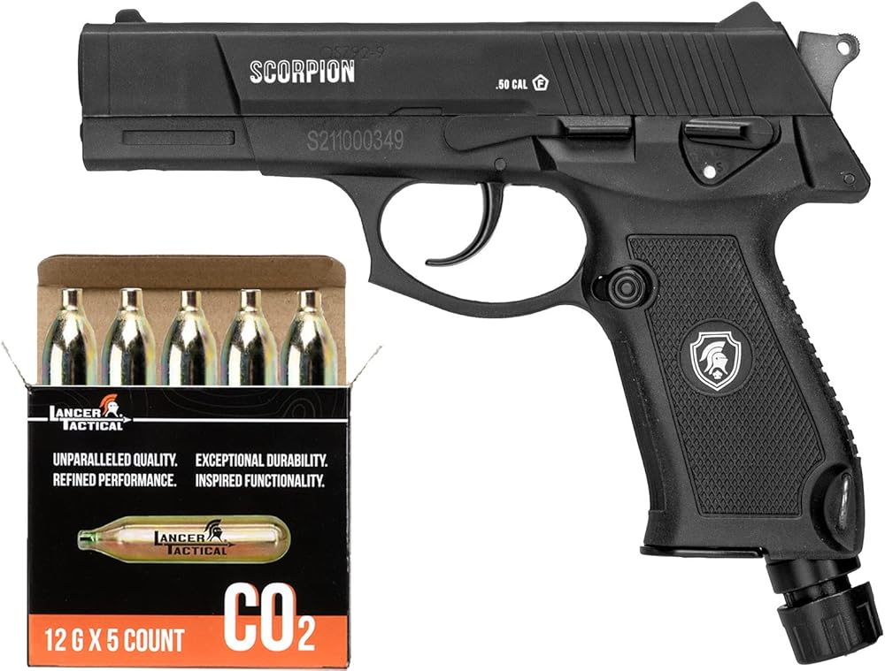 لانسر مسدس مقذوف الفلفل التكتيكي 0.5 عيار ثاني أكسيد الكربون غير ارتدادي للدفاع عن النفس - سلاح فتاك أقل للحماية الشخصية - مجموعة كاملة مع اثنين من الأكواب (العقرب)