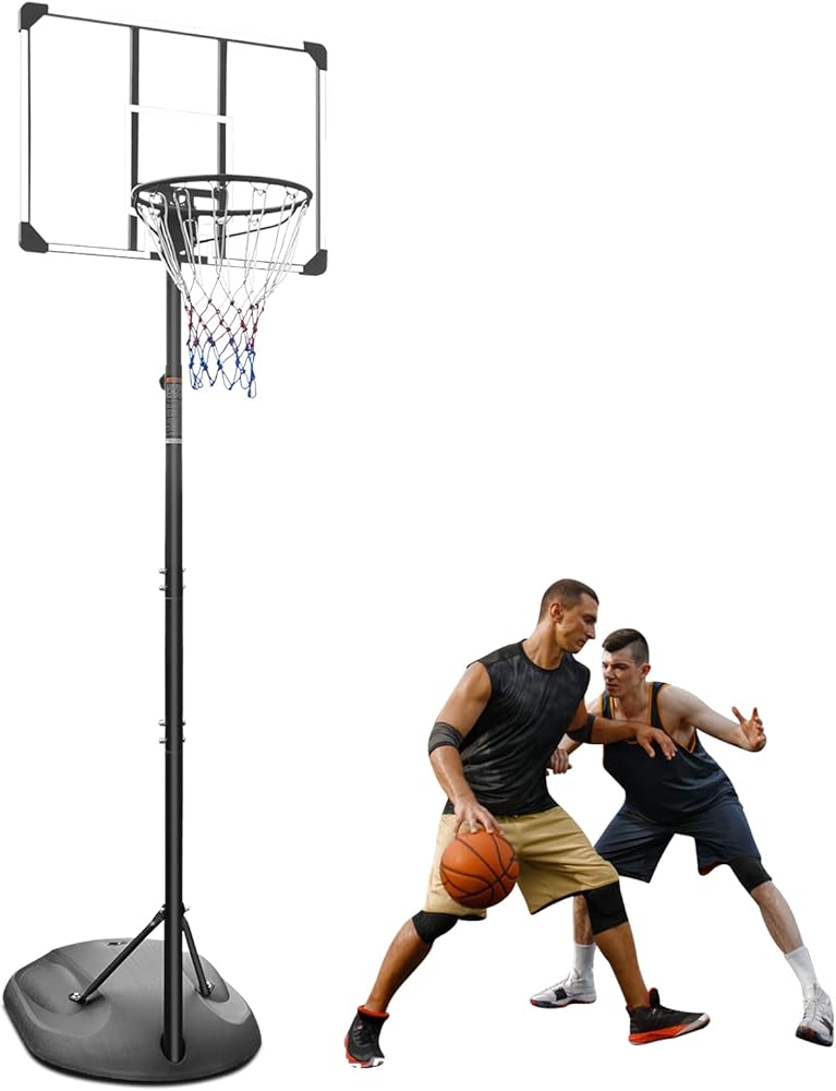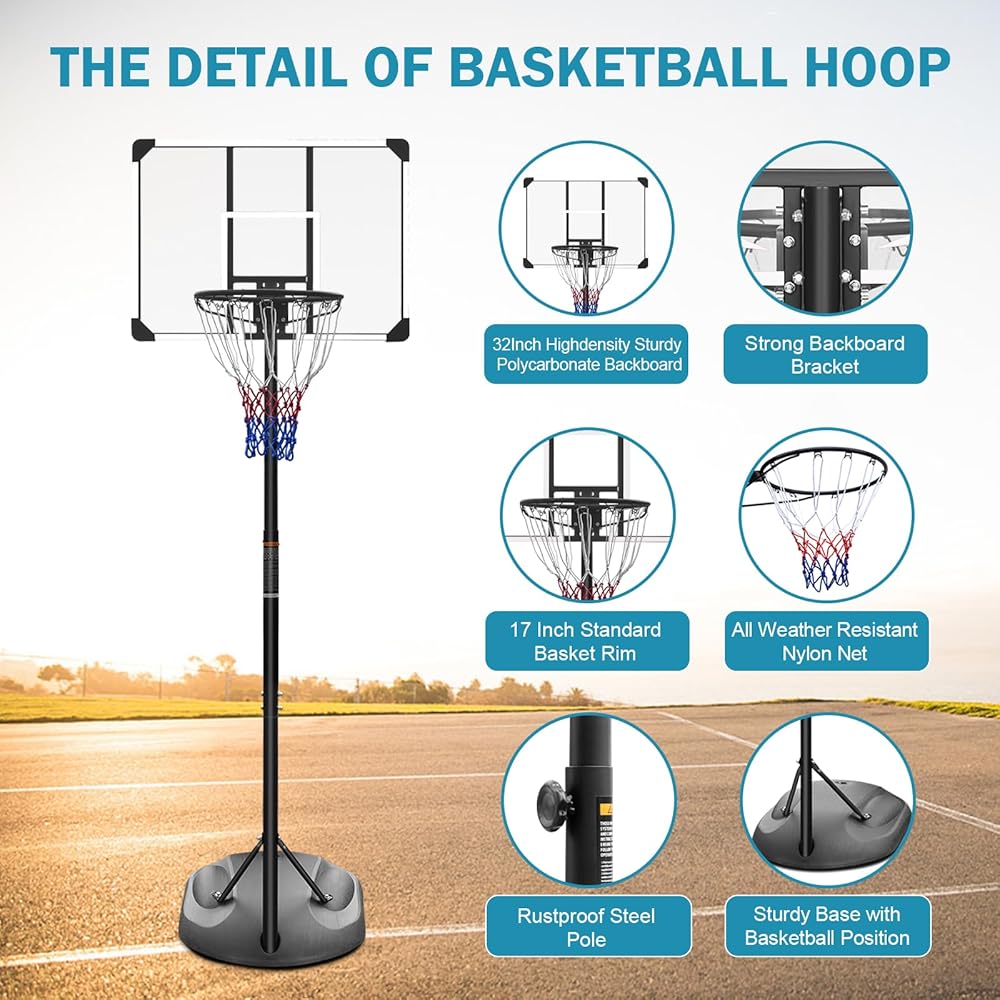 【هيكل عالي التحمل】نظام هدف قياسي لكرة السلة مصمم بعمود فولاذي قوي عالي القوة ولوحة خلفية شفافة مقاومة للكسر مقاس 32 بوصة من البولي فينيل كلوريد، وحلقة كرة السلة في الهواء الطلق/داخل المنزل باستخدام قاعدة قولبة عالية القوة من البولي إيثيلين عالي الكثافة وشبكة نايلون متينة مناسبة لجميع الأحوال الجوية. يمكن أن يقلل تصميم مصد السلة الممتص للصدمات من قوة التأثير الناتجة عن الاصطدام بما يكفي للطقس السيئ والألعاب المكثفة للاستخدام طويل الأمد.