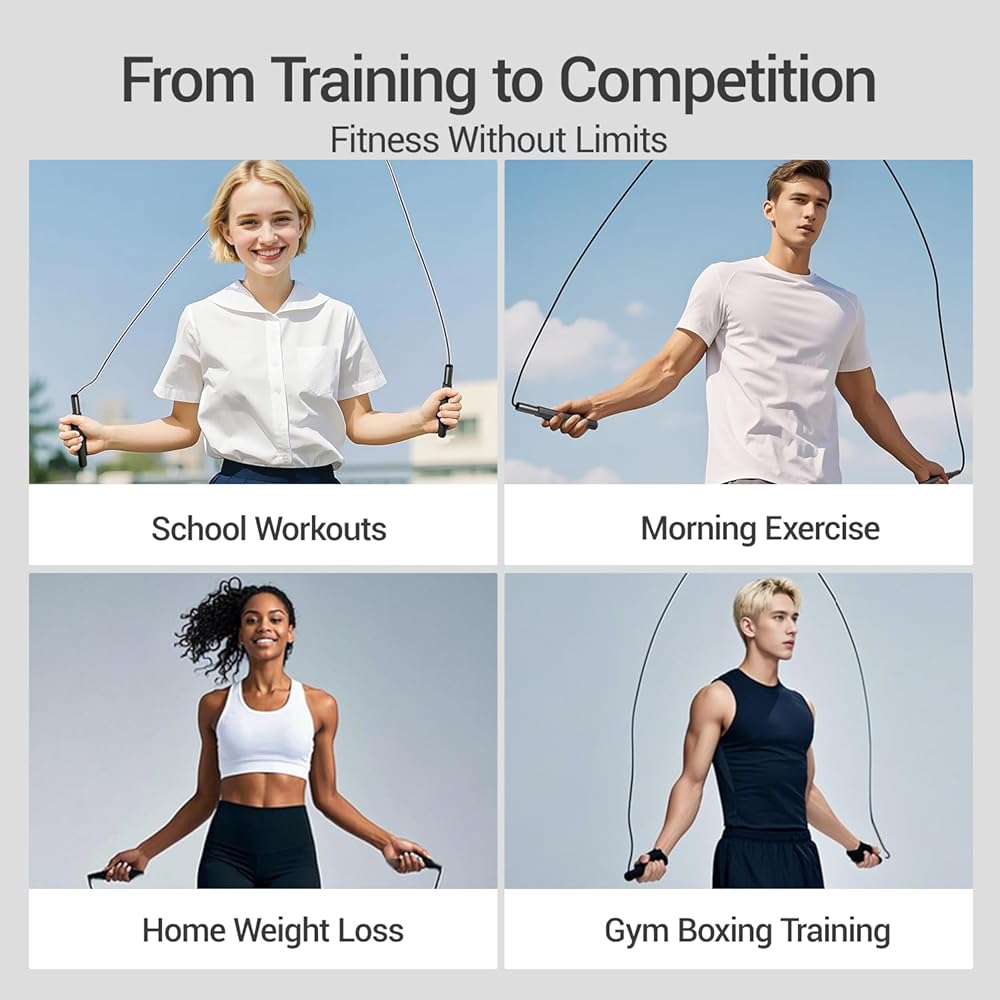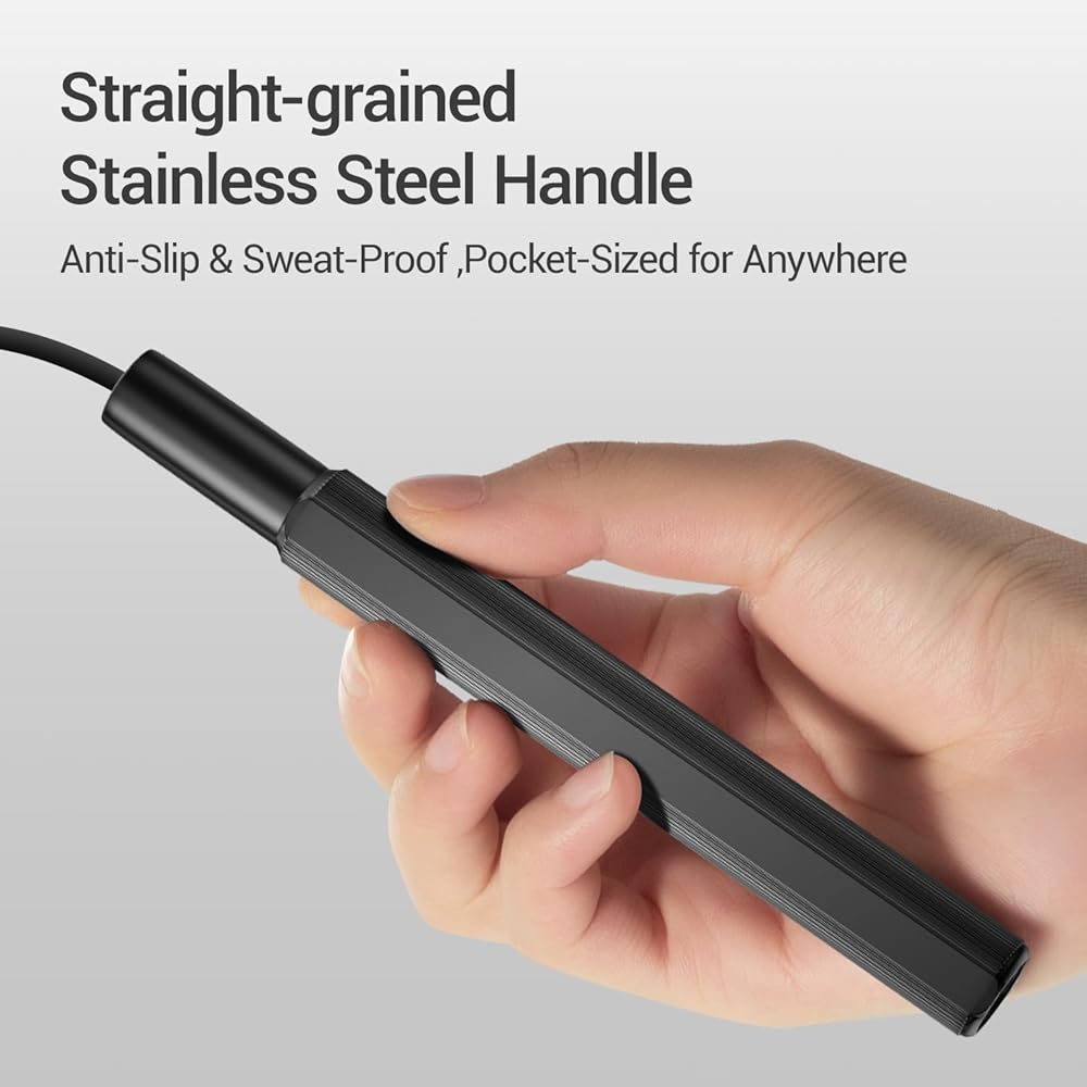 مقابض مريحة من سبائك الألومنيوم: تتميز المقابض المريحة بملمس غير قابل للانزلاق ومقاوم للعرق لضمان قبضة محكمة أثناء التخطي، مما يبقيك آمنًا أثناء ممارسة التمارين. يزن حبل القفز السلكي 0.2 رطل فقط والتصميم ذو الحبيبات المستقيمة يعزز التحكم مع تقليل إجهاد الذراع أثناء التدريب عالي الكثافة.