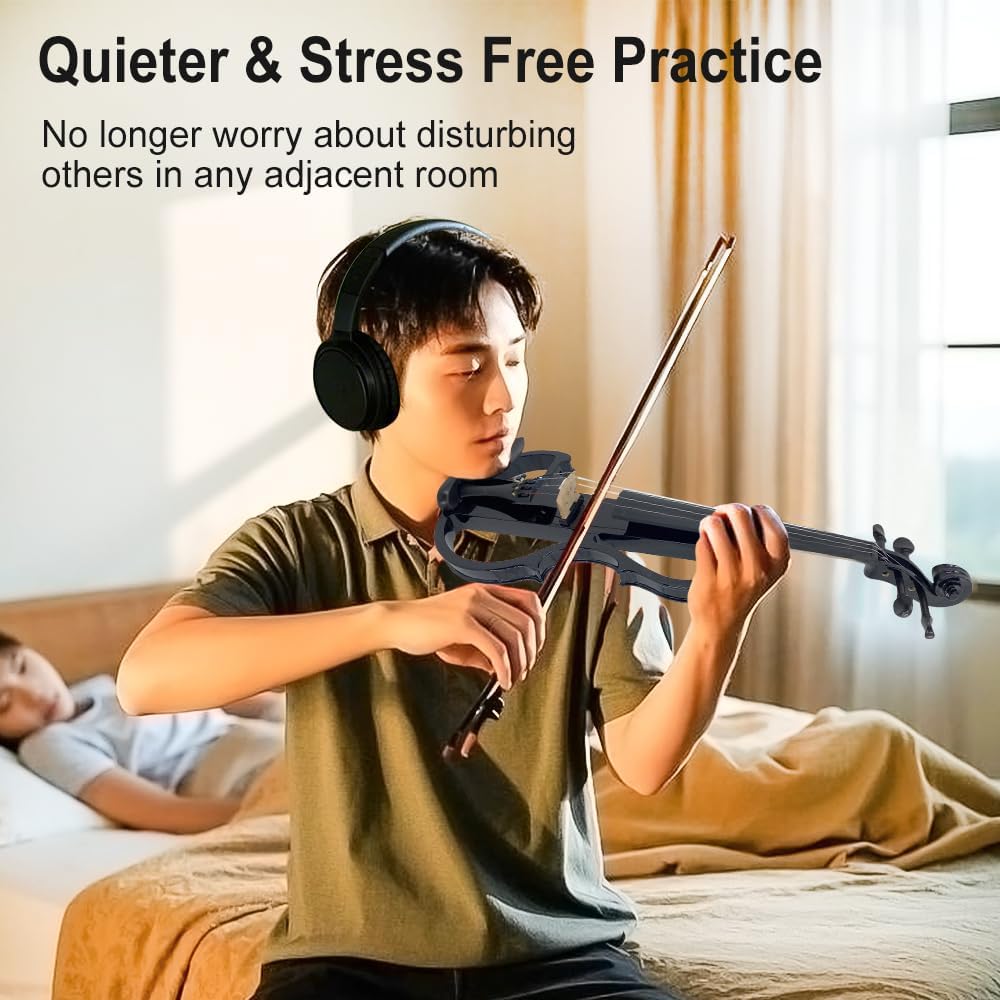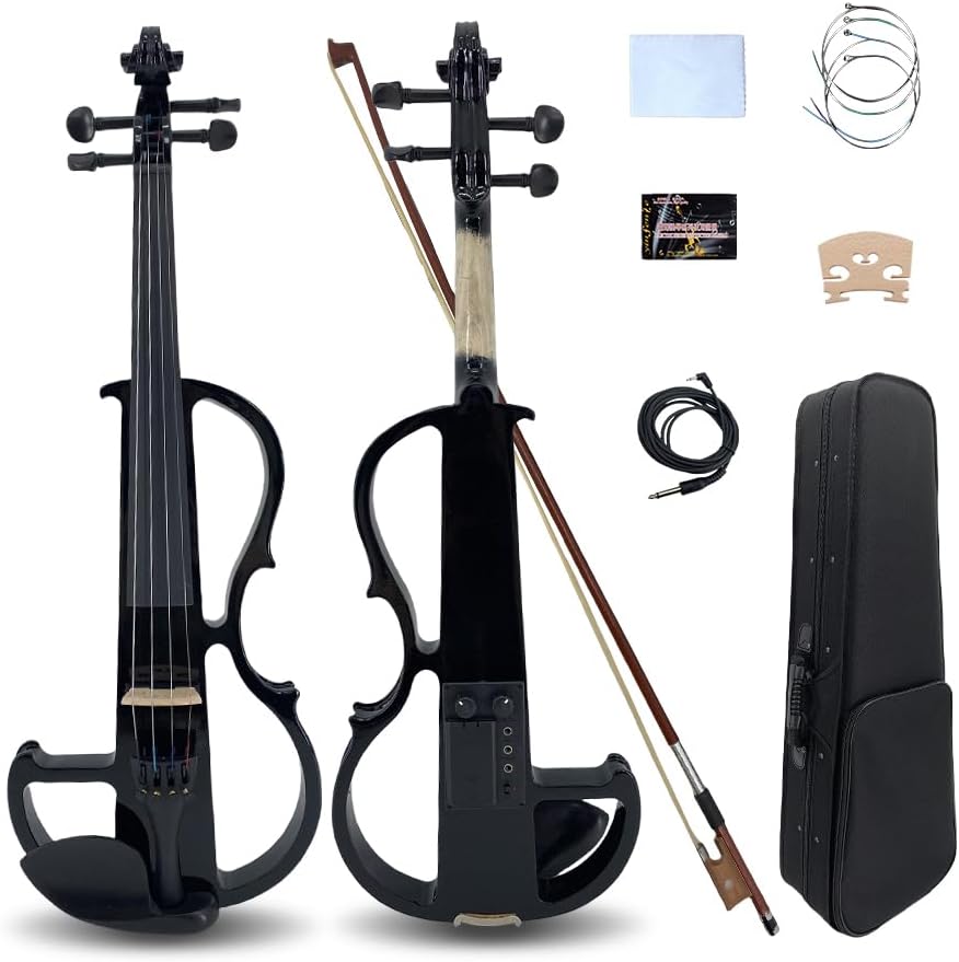 🎵 Complete Violin Set ~ This electric violin comes with a starter kit including a bow, hard case, rosin, connecting cable, and spare strings. Simply tune it up and start playing to enjoy the world of music.