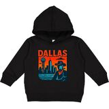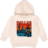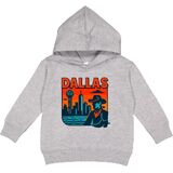 Embrace the spirit of Dallas with this bold and colorful design featuring a cowboy silhouette against the iconic Dallas skyline. Perfect for fans of the Lone Star state and its vibrant culture, this Toddler Hoodie celebrates the unique charm of the city.
