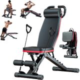 💪 يستهدف مجموعات العضلات المتعددة: يتيح تدريب الصدر والكتفين والظهر والذراعين والعضلات الأساسية والساقين في مقعد واحد. تشمل التمارين الضغط على الدمبل، والجلوس، وتمارين البطن، وتجعيد الشعر، والتمدد المفرط، وتمديدات الساق، مما يوفر تنوعًا في القوة والتجانس والتكييف.