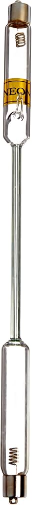 EISCO spectrum tube is used for demonstrating spectral lines of pure substances, and contains neon (Ne) gas under pressure to produce light for spectral analysis. The tube has a 10.0cm capillary in the center for observing light wavelengths, and is straight form with side electrodes for conductivity. The tube measures 26.0cm (H), and is made of glass for transparency and resistance to heat. (H is height, the vertical distance from the lowest to highest point.) Glass is an inert brittle solid, heat-resistant, and typically transparent. It is relatively easily cut and shaped. The tube requires a spectrum tube power supply for operation (sold separately), and should be operated at 30-second on/off intervals for longer product life and safer use. The tube is suitable for high school or college students, or ages 13 to 21.