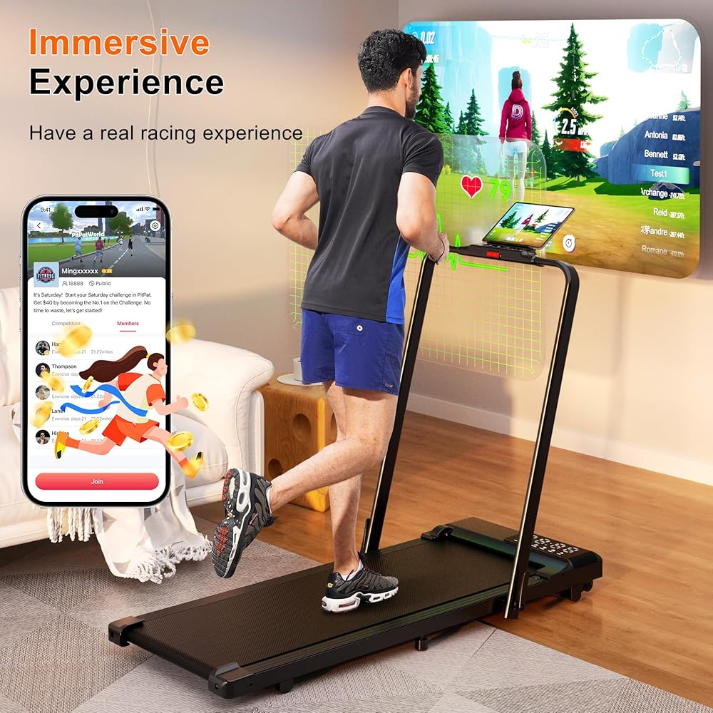 افتح جهاز المشي المحمول الخاص بك باستخدام تطبيق PitPat: قم بتنشيط وسادة المشي الخاصة بك باستخدام شريط المقبض من خلال تطبيق PitPat للانضمام إلى جولات الجري الموجهة وتتبع الإحصائيات والمنافسة عالميًا. يصبح جهاز المشي هذا الموجود تحت المكتب شريكك المتصل باللياقة البدنية - اتصل بنا إذا كنت بحاجة إلى مساعدة في الإعداد.