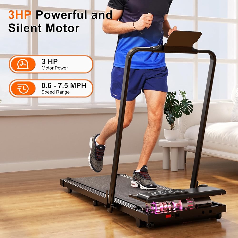 محرك هادئ بقوة 3.0 حصان - أجهزة مشي منزلية لا تسبب الإزعاج: تم تصميم جهاز المشي المنزلي هذا للتمرينات المنزلية الهادئة، ويتميز بمحرك قوي ومنخفض الضوضاء (<55 ديسيبل). مثالي كجهاز مشي محمول للمنزل يدعم سرعات تصل إلى 7.5 ميل في الساعة ويصل وزن المستخدمين إلى 300 رطل.