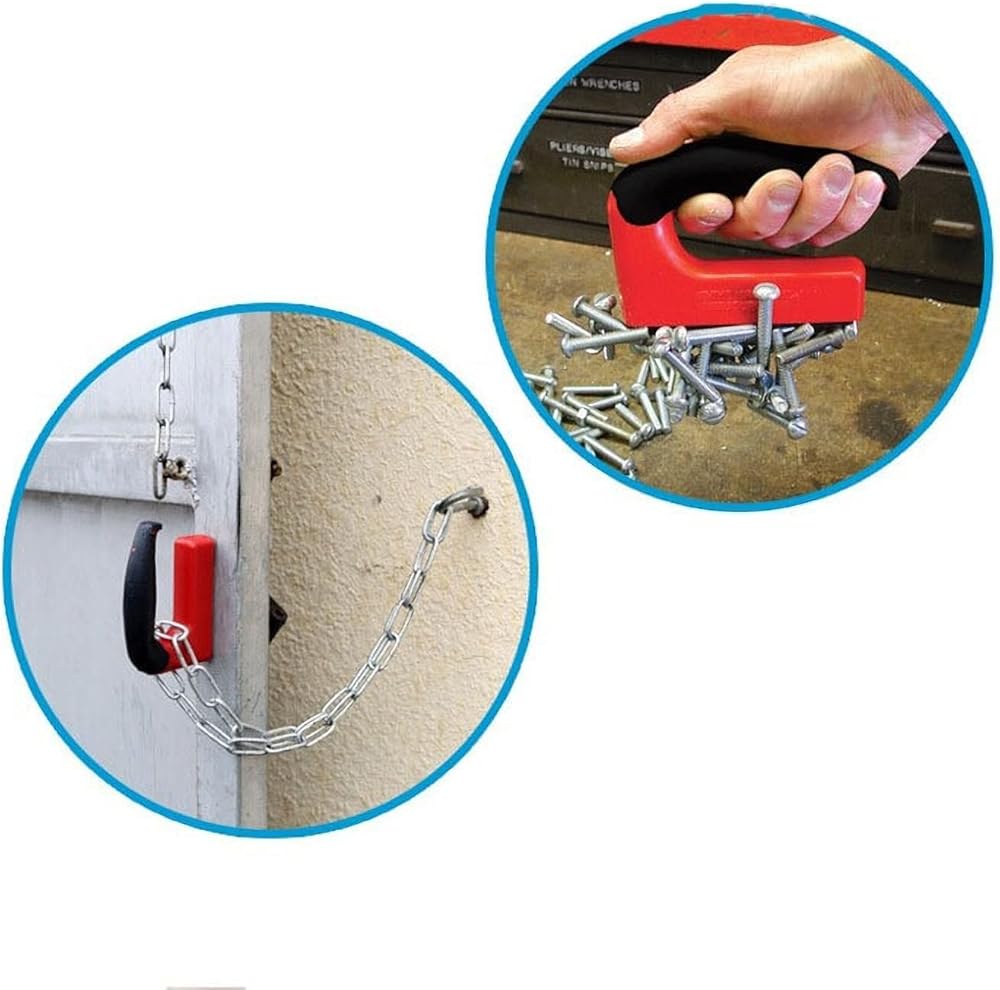 • تصميم مريح: الجسم البلاستيكي الأحمر ومقابض المقود المريحة المصنوعة من المطاط تجعل استخدام هذا المغناطيس الخاص أمرًا سهلاً ومريحًا لأي مشروع. يشتمل المغناطيس أيضًا على درعين مغناطيسيين لمنع قوة الجذب عند عدم استخدامه حتى لا يجذب الأدوات أو المعادن الأخرى.