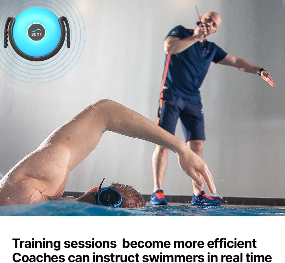 • ميزات SONR الفريدة: لا توجد سماعات أذن أو بلوتوث، يساعد جهاز إرسال راديو SONR المدرب على إعطاء التعليمات الصحيحة عند الحاجة. يمكن لمدربي السباحة استخدام سماعة رأس إضافية مزودة بميكروفون لتوفير التعليمات دون استخدام اليدين. يمكن استخدام سماعة الرأس اللاسلكية SONR في أي نوع من أنواع التدريب على السباحة - التدريب في المياه المفتوحة أو حمام السباحة.