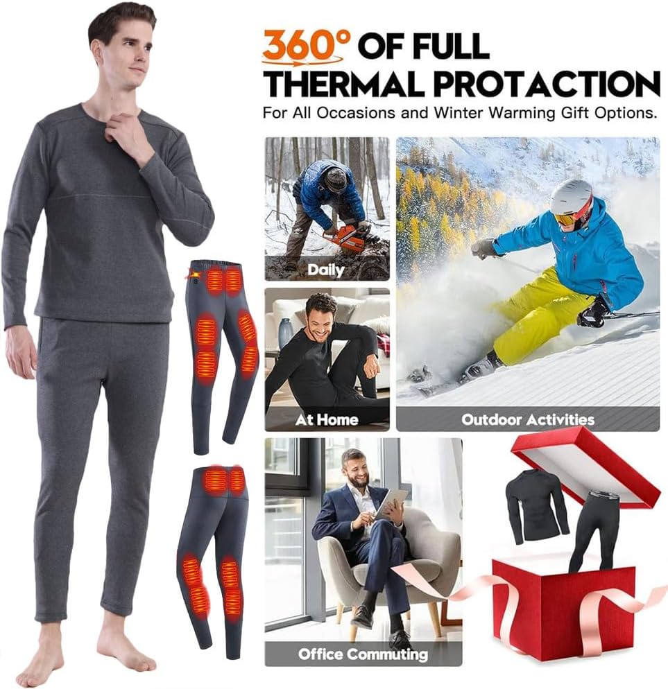 • 🧡👕تدفئة بتغطية كاملة - هذه الملابس الداخلية الأنيقة والمريحة للتدفئة في الهواء الطلق في منتصف البطن والساق والخصر. بضغطة زر واحدة، يمكنك ضبط 3 درجات حرارة للتدفئة بين 40 درجة مئوية إلى 60 درجة مئوية، مما يوفر الدفء المستمر لقلبك وتخفيف الانزعاج.