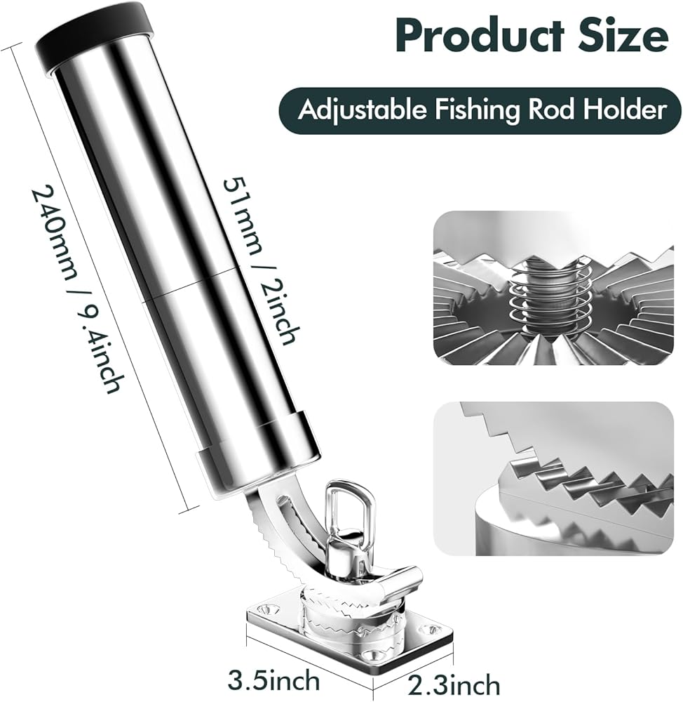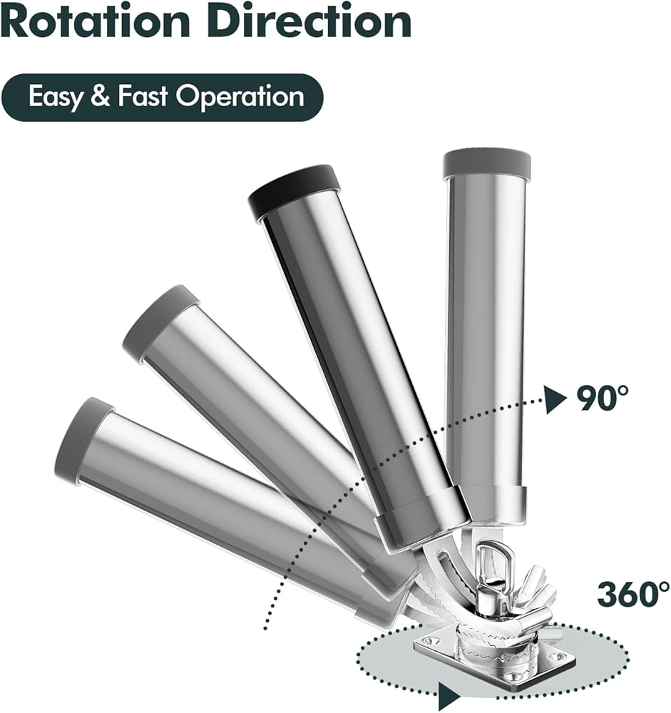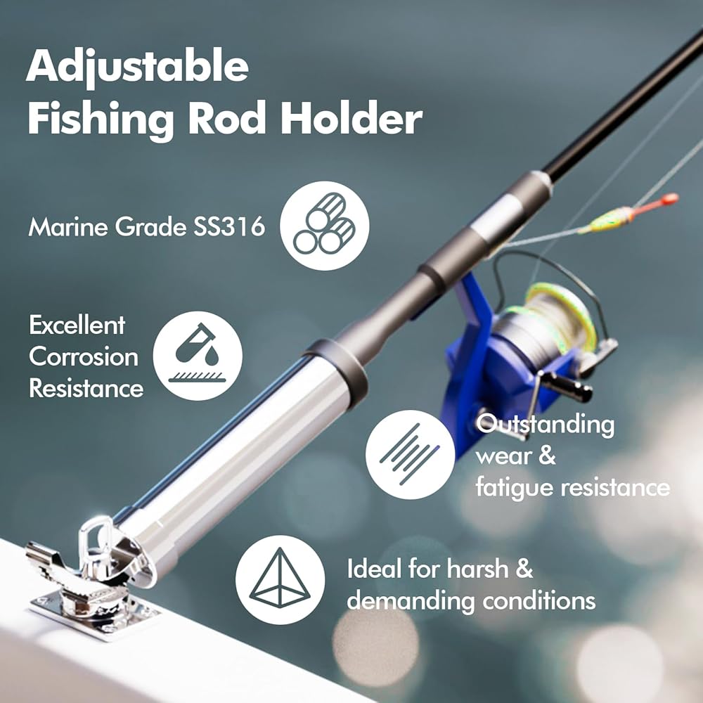 [Marine-Grade Stainless Steel 316] Crafted from stainless steel 316, our marine grade rod holders withstand harsh saltwater environments, offering superior corrosion resistance and long-lasting durability for boat fishing