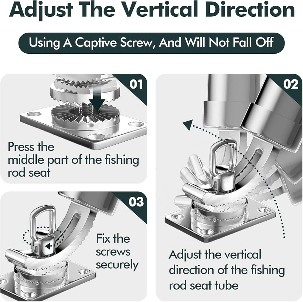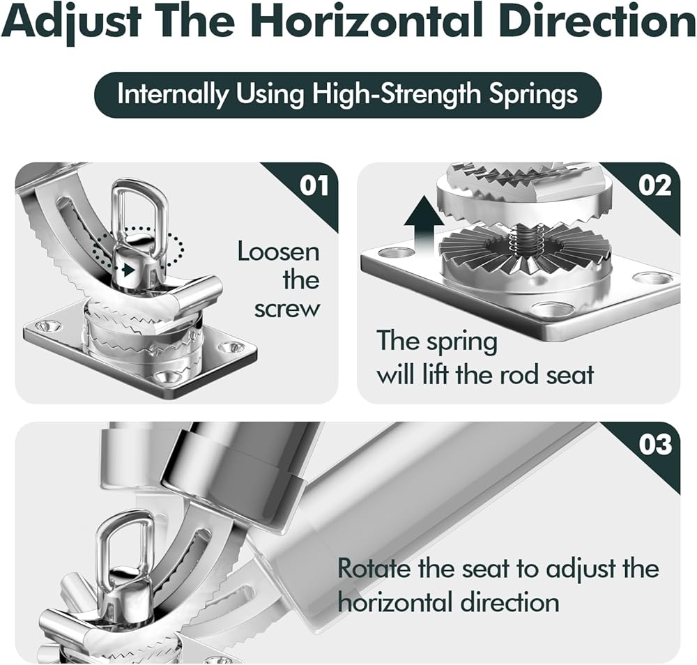 [360° Multi-Directional Adjustable] Featuring dual control knobs and an SS316 spring mechanism, our rod holder offers effortless 360° horizontal rotation + 180° vertical tilt for instant and smooth positioning adjustments