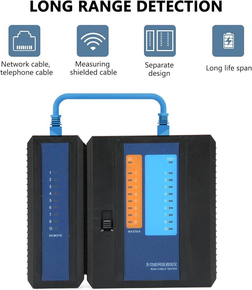 - [متعدد الأغراض] يتميز جهاز اختبار كابل الشبكة بالكشف عن بعد، وتصميم منقسم مرن ومتعدد الاستخدامات. اختبارات تصل إلى 500 متر/1640.4 قدم من الكابلات.