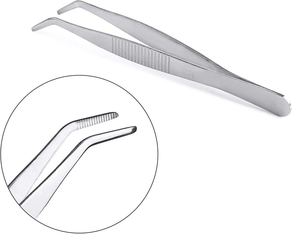 3. تصميم مانع للانزلاق: تحتوي الملاقط المنحنية على أطراف مسننة لضمان قبضة محكمة دون الانزلاق. يمكن الإمساك بالمقبض ذو الأخدود بمادة مانعة للانزلاق، كما يوفر المقبض المحزز الأمان، وهو مريح للغاية.