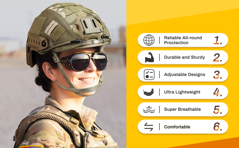 High-Quality Material: ABS Engineering Plastics + Anti-seismic Foam Plastic+ Nylon+ Helmet Cover. Built-in EPP cushions are used for CS Airsoft Paintball Games, reducing the impact on the head injury.