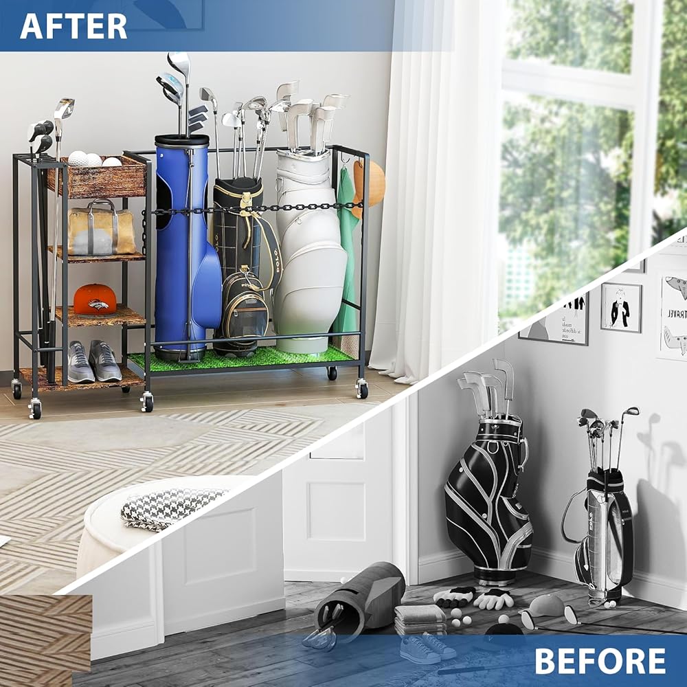 خدمة عملاء ممتازة للتجميع السريع: يتضمن رف تخزين حقائب الجولف فتحات مثقوبة مسبقًا وجميع الأجهزة اللازمة للتجميع السريع والخالي من المتاعب. هل لديك أسئلة أو مشاكل؟ سيقوم فريق خدمة العملاء المستجيب لدينا بالرد خلال 24 ساعة لتقديم حل سريع.