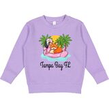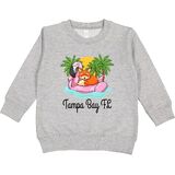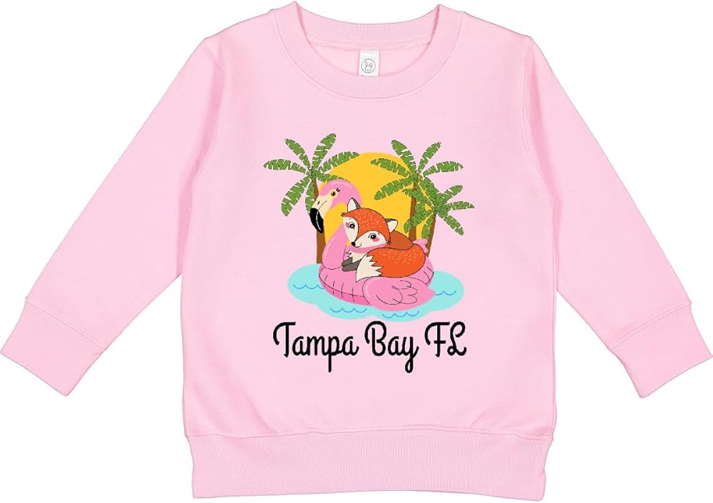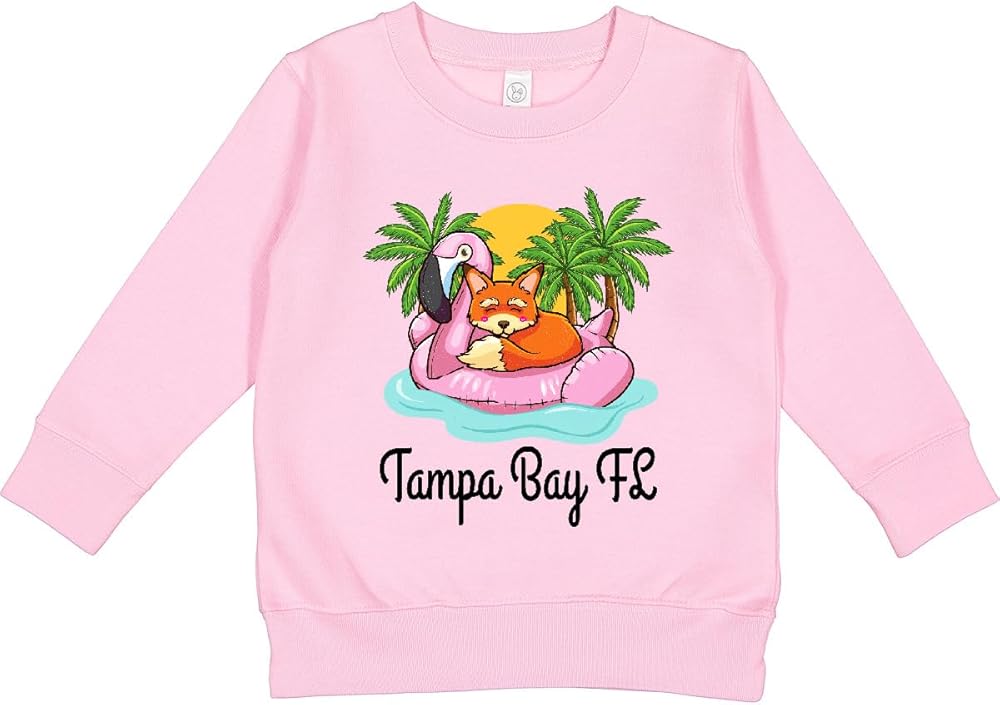 Tampa Bay Florida Toddler Sweatshirt outfit with fox in a flamingo water toy and tropical sun and palm trees design for a vacation travel trip souvenir