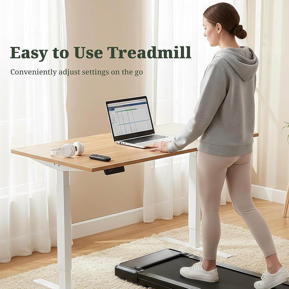 【Powerful Quiet Motor & 320LBS capacity】:This under desk walking pad comes with a ultra-quiet motor and supports up to 320 lbs weight capacity. As a practical portable treadmill, it operates below 45DB—so you can use this walking pad freely at home or office, no more worrying about disturbing others who are resting or working. Enjoy peaceful, cozy workouts with this outstanding pick among treadmills for home.