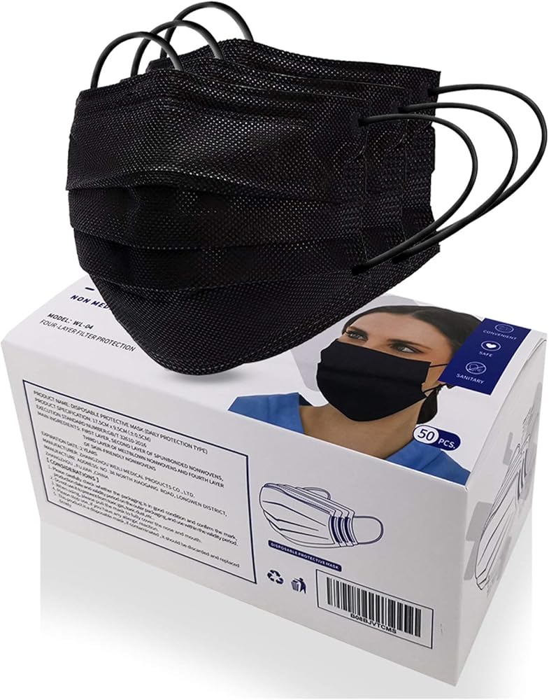 التصميم الموصى به: يأتي قناع الوجه الأسود هذا الذي يستخدم لمرة واحدة مع خطافات أذن مرنة مريحة، وخطاطيف أذن فائقة النعومة تمنع ضغط الأذن. الطبقة الداخلية لأقنعة الوجه مصنوعة من أنسجة الوجه الناعمة، غير مصبوغة وناعمة على البشرة.