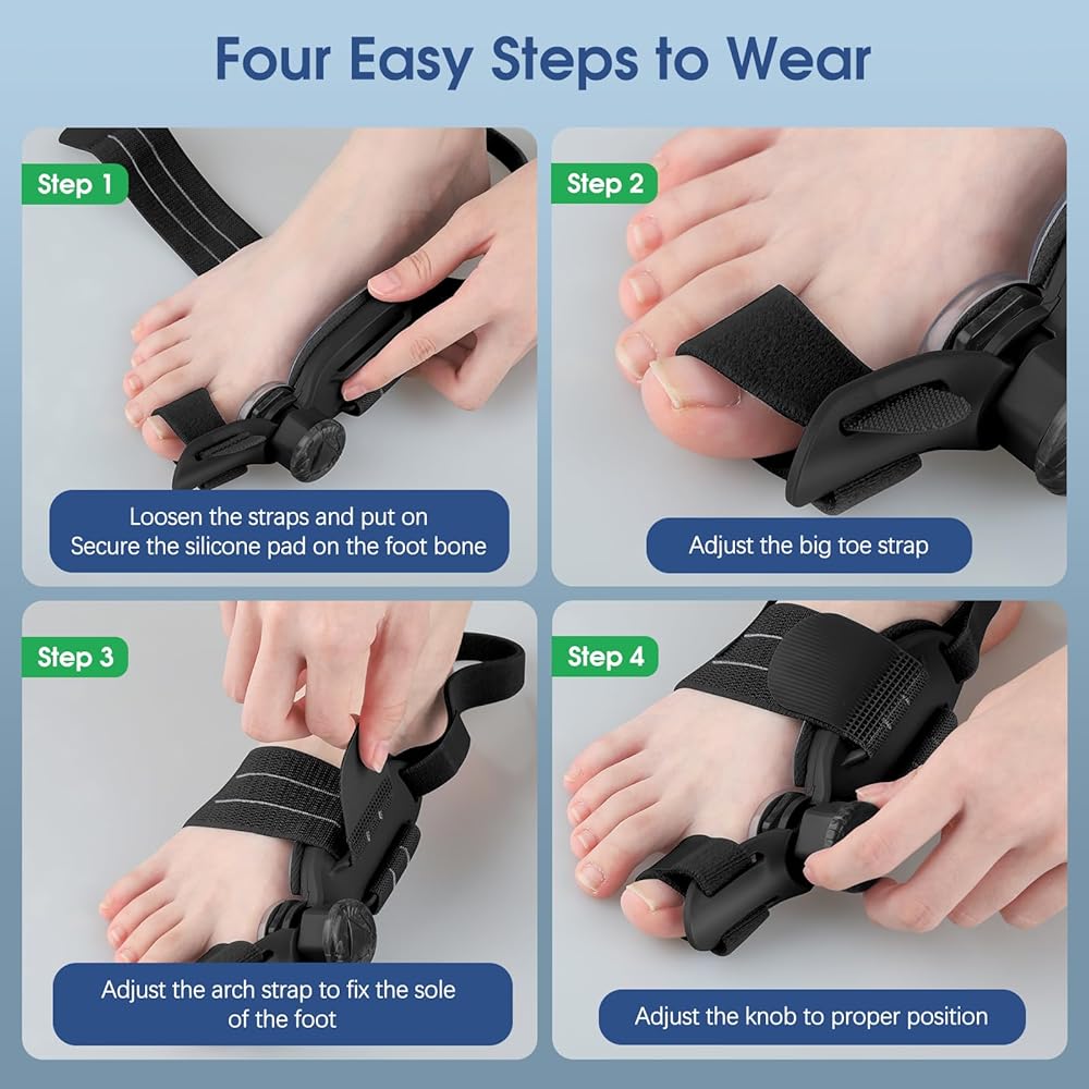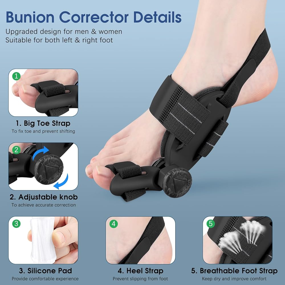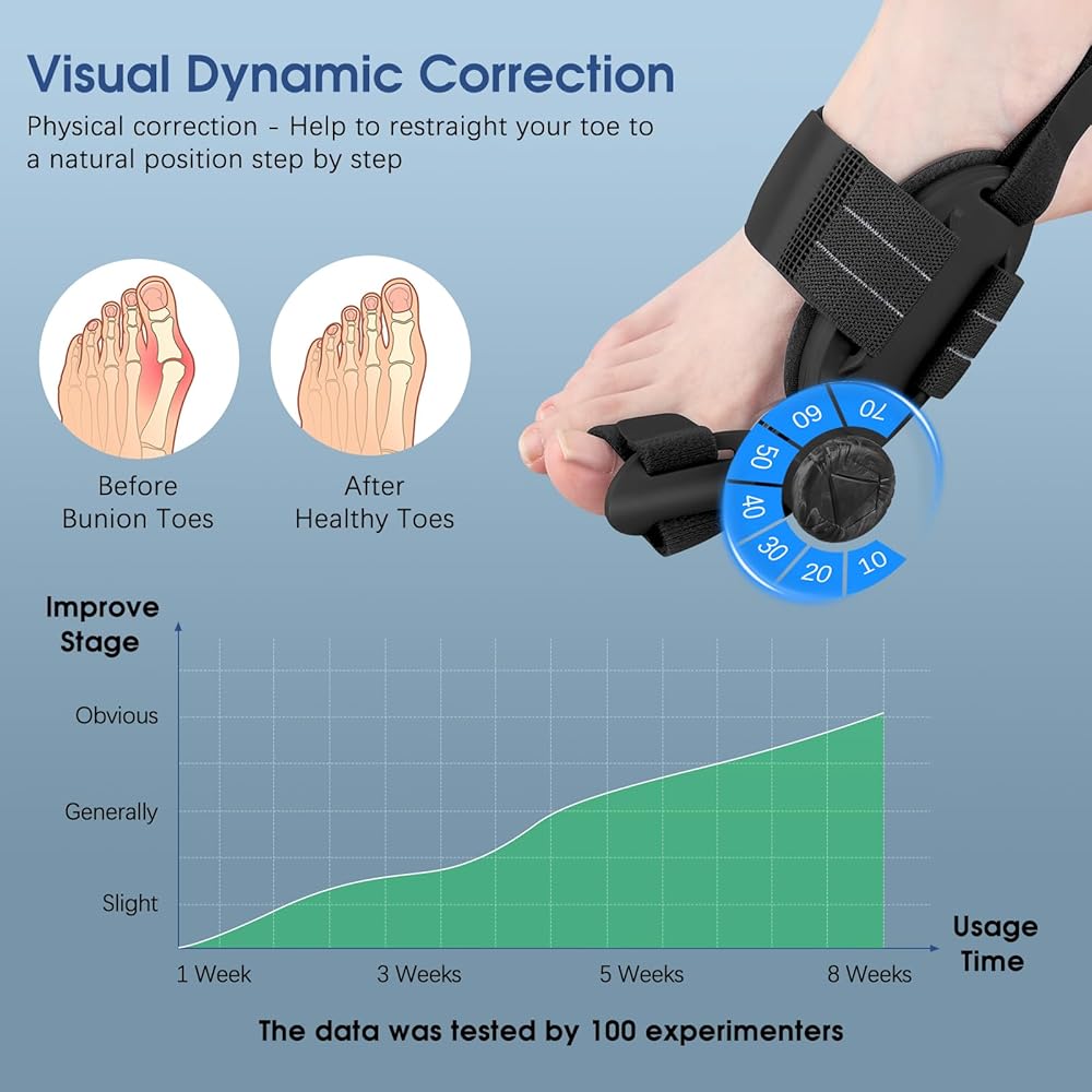 تخفيف الورم ومحاذاة أصابع القدم: يعمل مصحح الورم العظمي هذا أيضًا كفاصل لأصابع القدم أو أداة فرد لأصابع القدم يمكن أن يقلل بشكل فعال من آلام الورم ويخفف الانزعاج في إصبع القدم الكبير لكل من الرجال والنساء. بالإضافة إلى ذلك، يختلف عن جبيرة أصابع القدم التقليدية، يمكن لإصلاح الورم المطور هذا أن يسحب إصبع قدمك الكبير بعيدًا عن أصابع القدم الأخرى عن طريق ضبط المقبض على زاوية دقيقة بناءً على شدة الورم، وذلك لتصحيح أصابع القدم التي تعاني من أعراض أروح إبهام القدم الخفيفة أو المتوسطة والحفاظ على محاذاة إصبع قدمك.