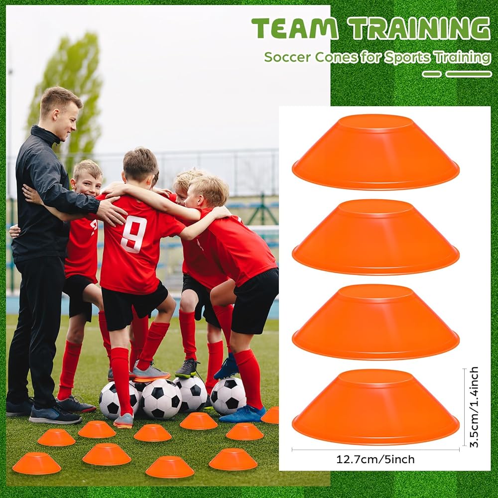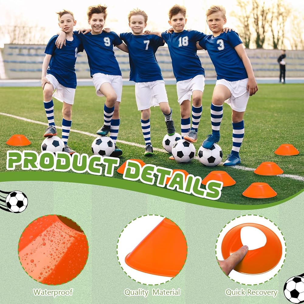 حجم صغير: يبلغ قطر كل مخروط كرة قدم حوالي 5 بوصات / 12.7 سم، وحجم صغير وتصميم خفيف الوزن يجعل هذه المخاريط الصغيرة سهلة الحمل والتخزين، وهي مثالية للرياضيين واللاعبين الترفيهيين على حد سواء.