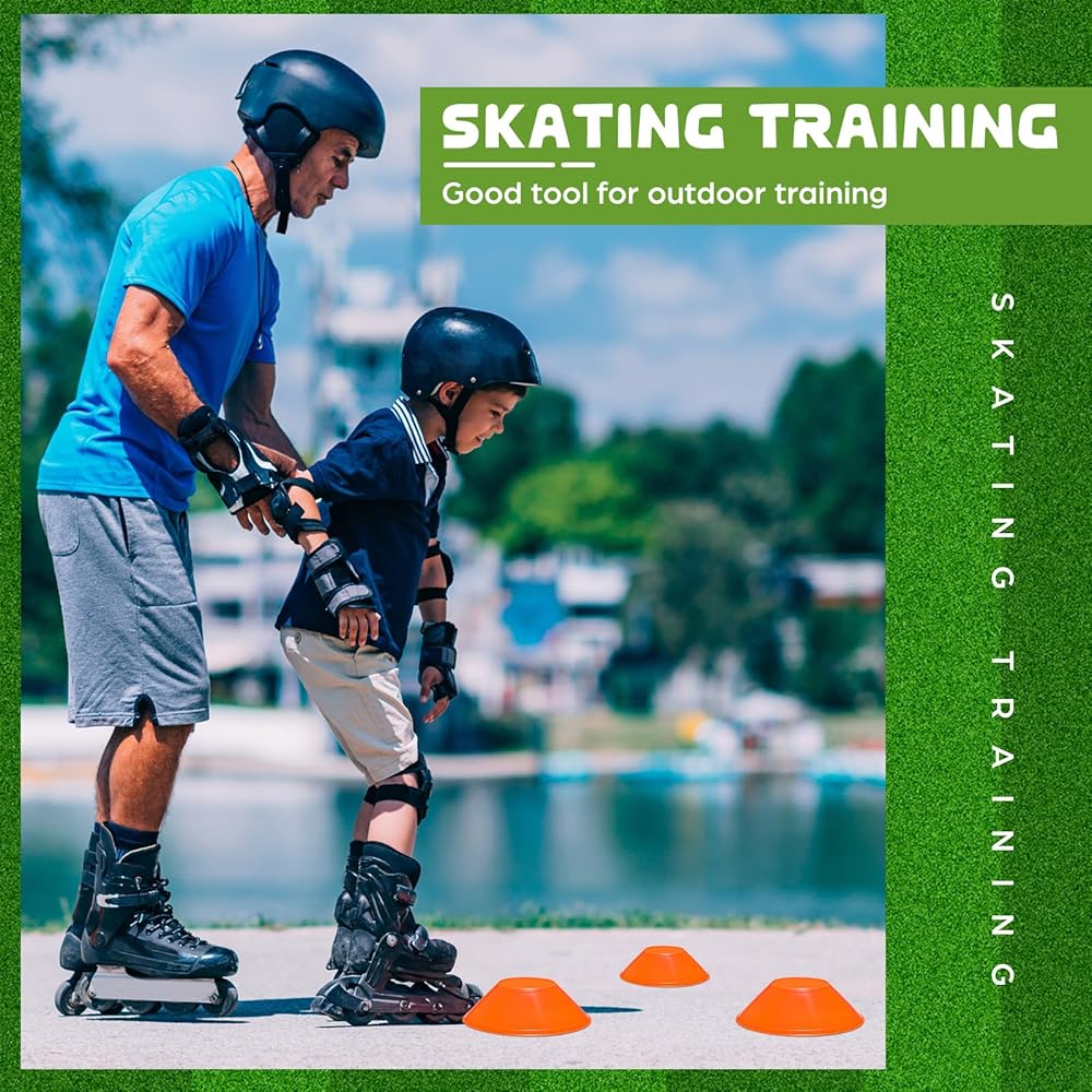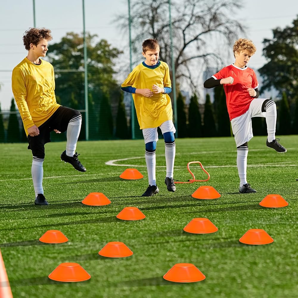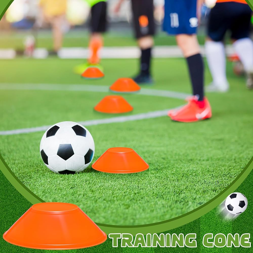 استخدامات متعددة: لا تقتصر مخاريطنا الصغيرة على كرة القدم، بل يمكن استخدامها في كرة القدم، وكرة السلة، والبيسبول، وألعاب التزلج على الجليد، والتدريب على العوائق، وممارسة وقوف السيارات والتنقل، ووضع علامات على المسار، وتدريب الكلاب، وتمتد إلى ما هو أبعد من الرياضة؛ استخدمها لفصول PE أو ألعاب الفناء الخلفي أو ديكورات الحفلات