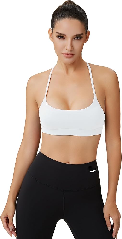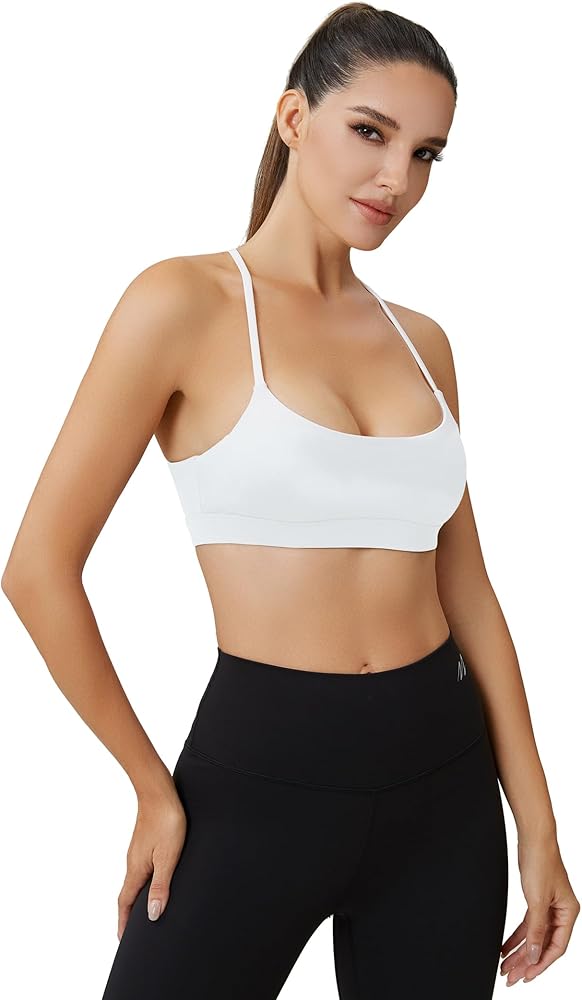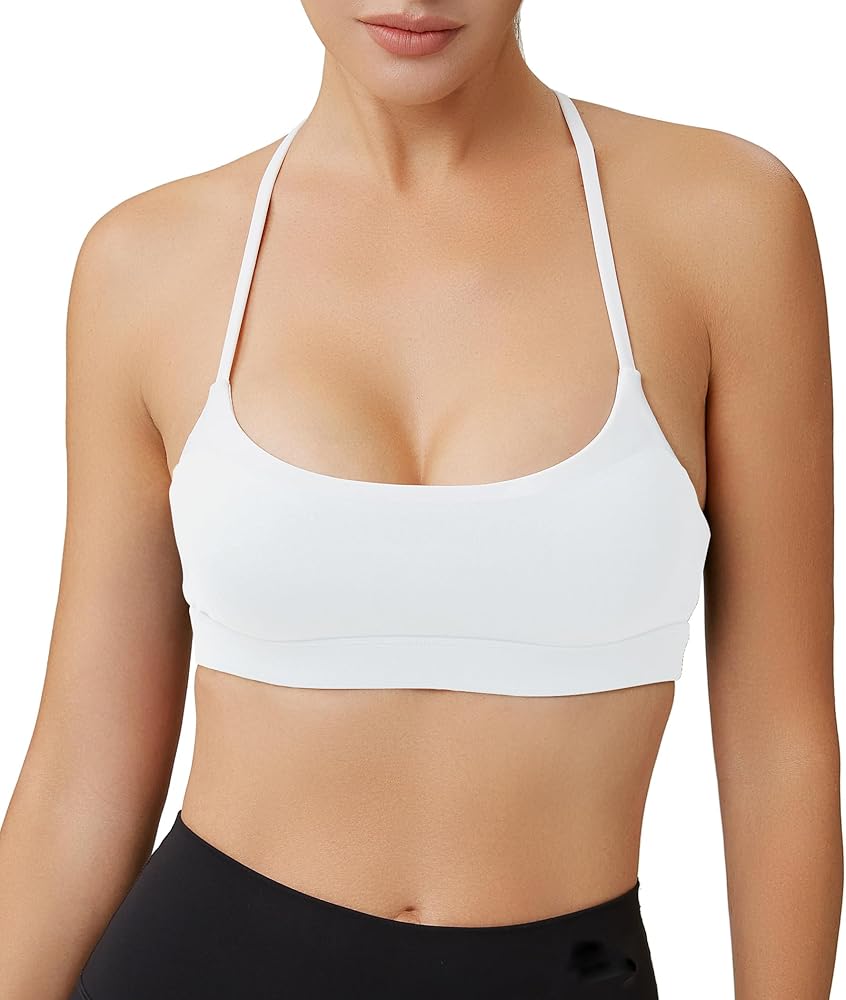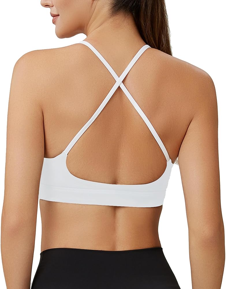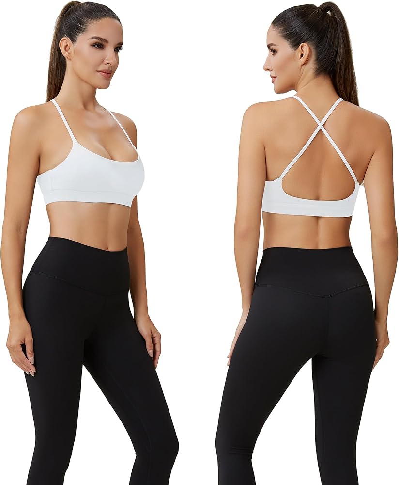 حمالة صدر رياضية للسيدات بأشرطة سباغيتي ملونة وحمالات صدر - رقبة مربعة وظهر متقاطع للتمرين، قطع علوية قصيرة مبطنة