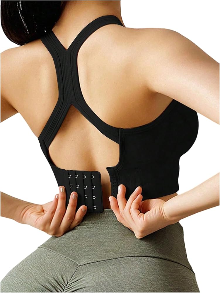 تصميم عصري: توفر حمالات الصدر الرياضية النسائية لدينا تصميمًا أنيقًا وانسيابيًا. تضيف الفتحة المفتوحة من الخلف لمسة جريئة، بينما يضمن خيار حمالات الصدر الرياضية المبطنة للسيدات تغطية إضافية