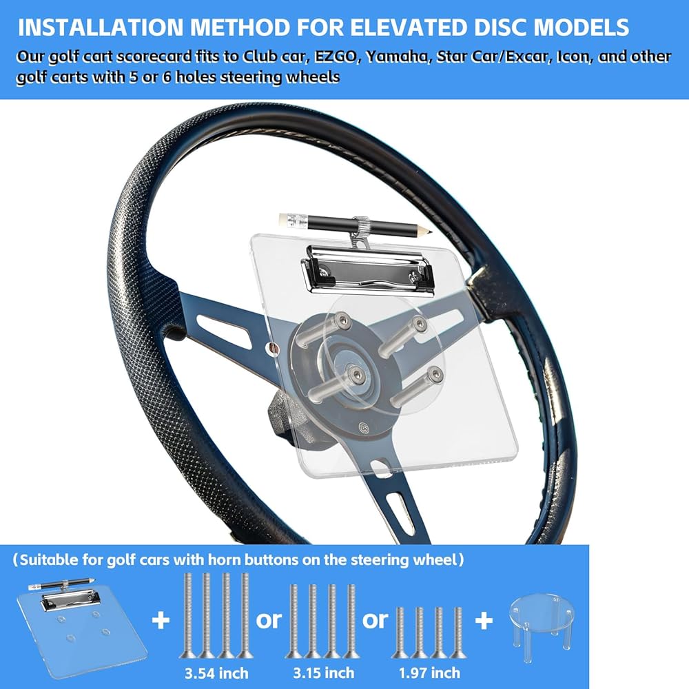 Universal Fit: Our golf cart scorecard fits to Club car, EZGO TXT& RXV, Yamaha G29, Star Car/Excar, Icon I40, and other golf carts with 5 or 6 holes steering wheels