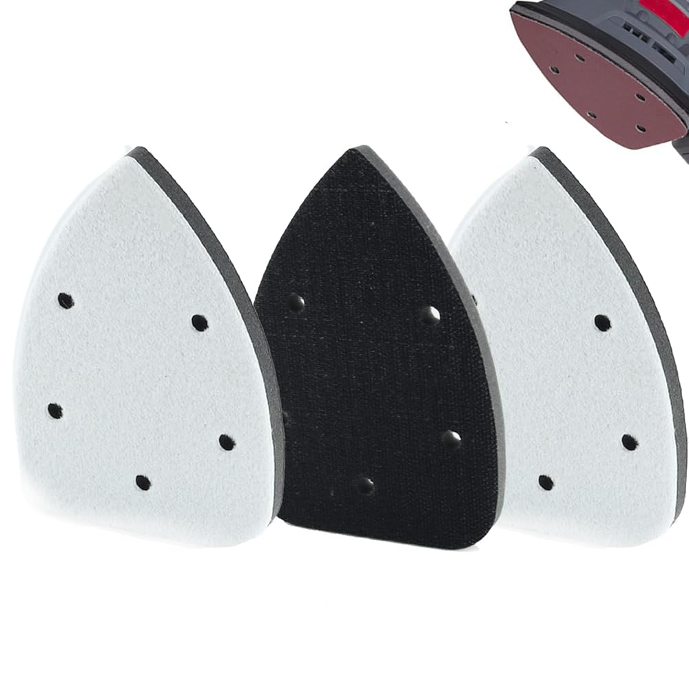 3pcs Mouse Detail Sanding Interface Pad 140mm*90mm 6 Holes Foam Interface Mouse Sander Sandpaper Backing Pad with Hook and Loop Backing Compatible with Ryobi Sander