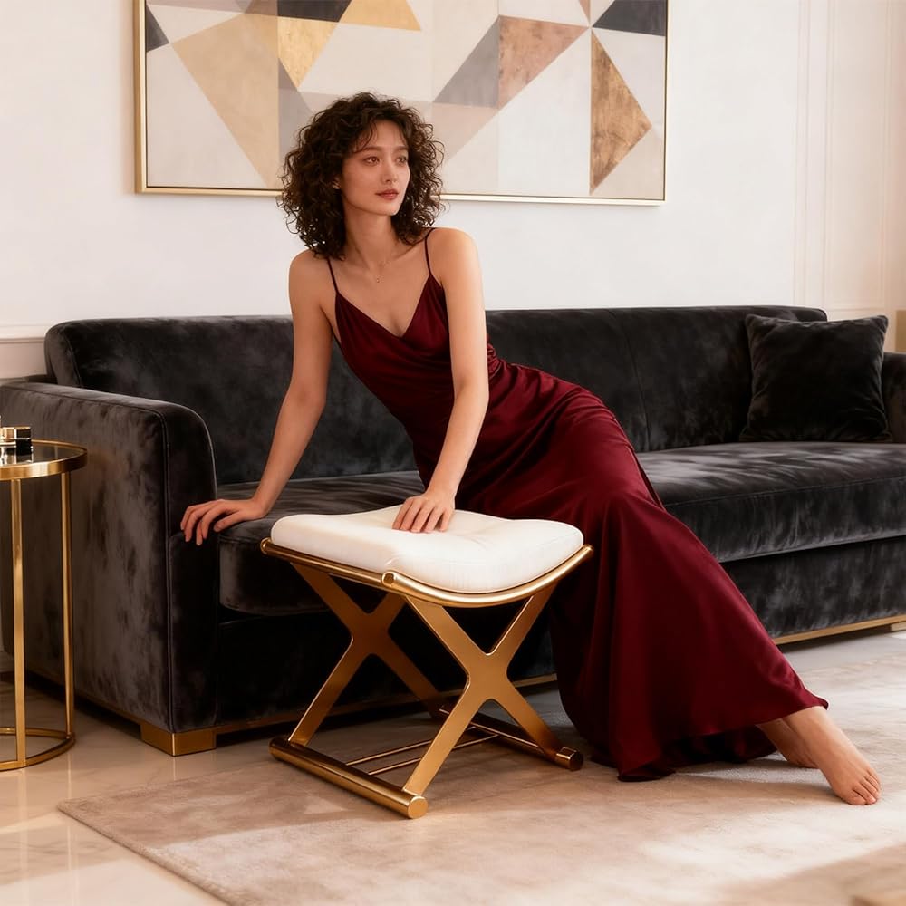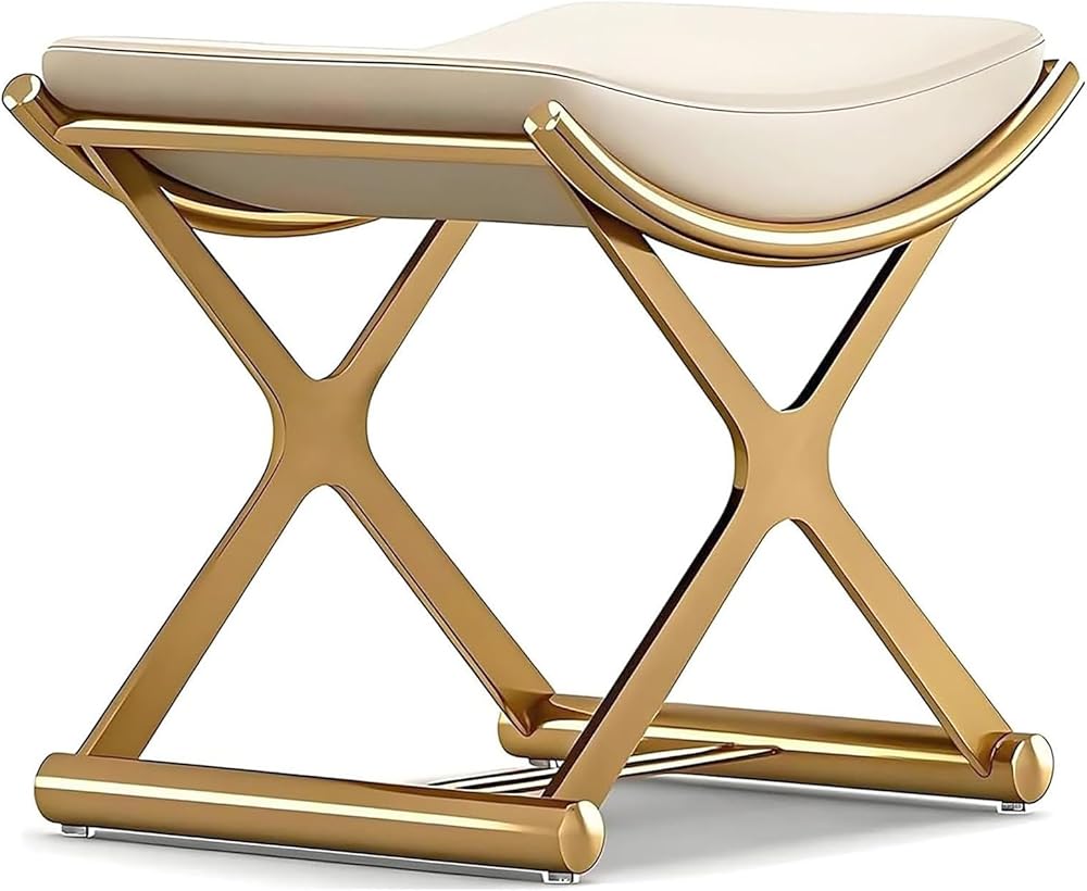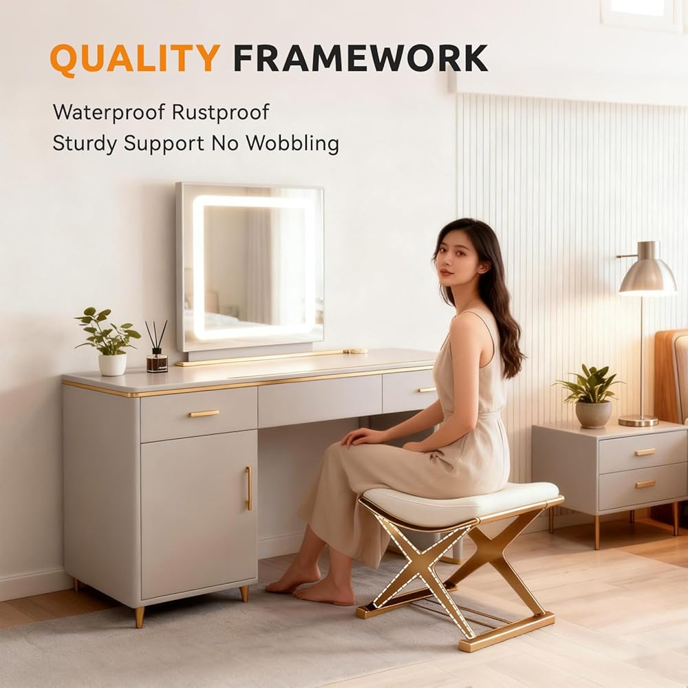 Elegant and Stylish: The vanity stool chair features a luxurious gold-toned frame paired with a creamy white cushion, infusing your home with refined modern luxury. Whether placed in the bedroom, bathroom, living room, dressing area, or makeup station, it instantly elevates the space's sophistication, exuding timeless elegant.