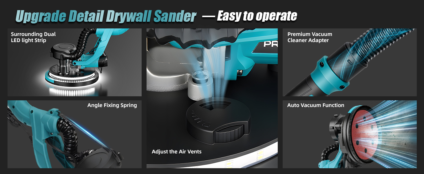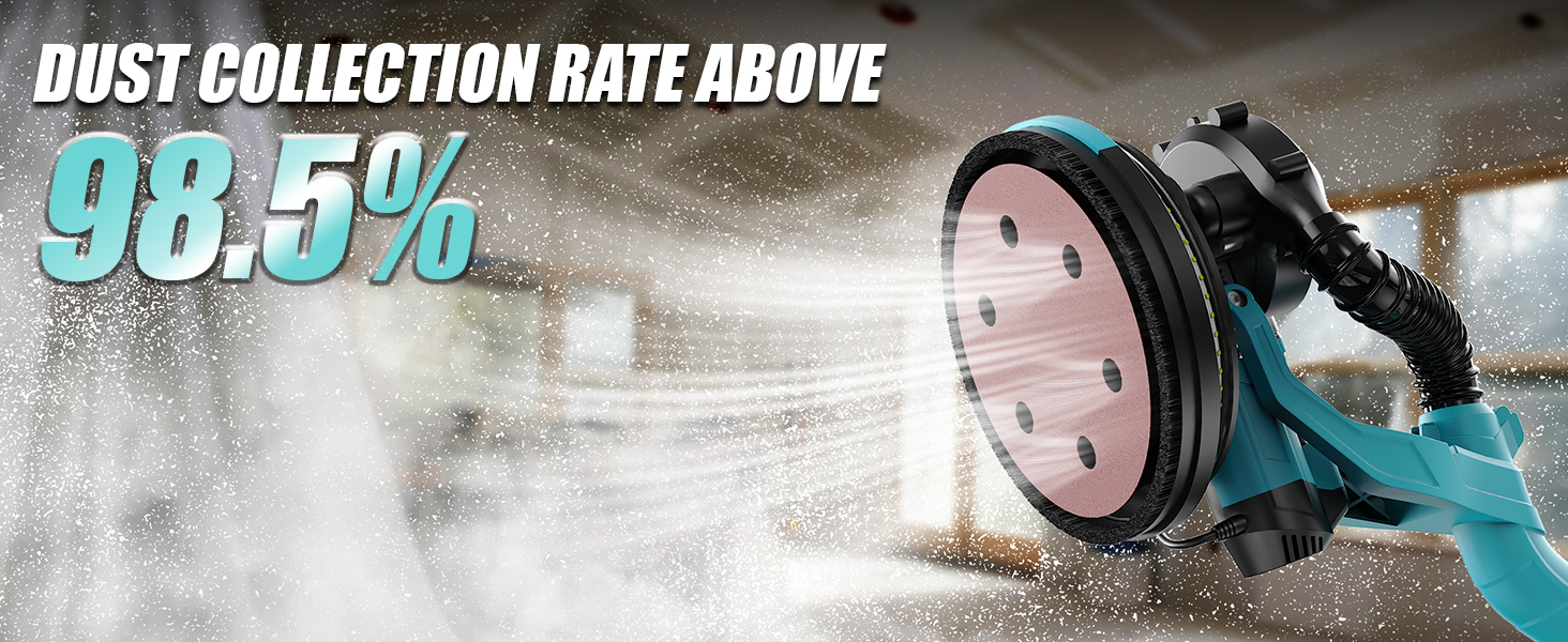 • 【أداة صنفرة الحوائط الجافة الخالية من الغبار - أكثر كفاءة وأسهل】قل وداعًا لأدوات الصنفرة التقليدية الشاقة وغير الفعالة! تتميز ماكينة صنفرة الحوائط الجافة Promtex بنظام تفريغ مدمج وتصميم قرص صنفرة ذو 7 فتحات، مما يحقق كفاءة في استخلاص الغبار تصل إلى 98.5%، مما يحافظ على بيئة العمل الخاصة بك نظيفة وجديدة. يمنع تصميم الواجهة المحكم الغلق خروج الغبار حتى بعد الاستخدام لفترة طويلة، مما يضمن تجربة صنفرة فعالة.