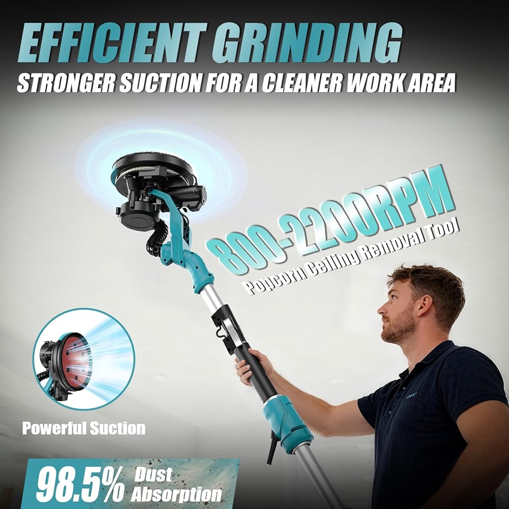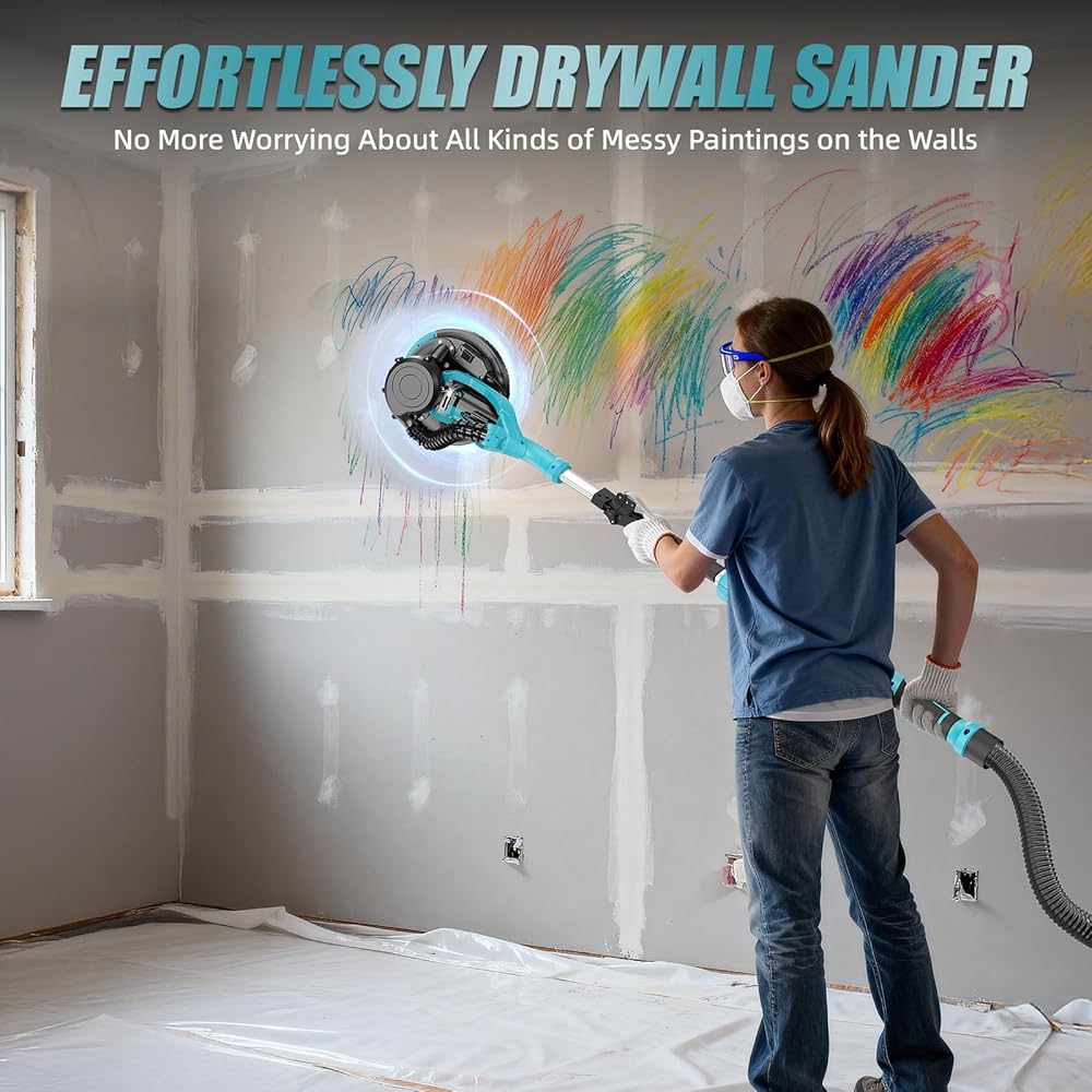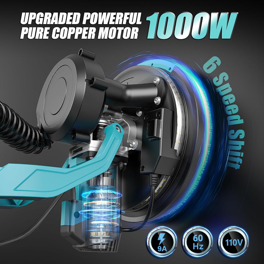 • محرك نحاسي نقي 1000 واط وتشغيل عالي الكفاءة 2200 دورة في الدقيقة - قدرة صنفرة قوية: تتميز ماكينة صنفرة الحوائط الجافة الكهربائية عالية الطاقة وعالية السرعة بأداء قوي، وصنفرة الجدران أو الأسقف بسهولة وبشكل متساوٍ. 6 سرعات قابلة للتعديل (800-2200 دورة في الدقيقة) تلبي احتياجاتك المتنوعة من الصنفرة. مثالية لصنفرة الحوائط الجافة، والجدران المطلية، والأسقف، والجدران الأسمنتية، وإزالة بقايا الأرضية، وطلاءات الطلاء، والجص السائب.