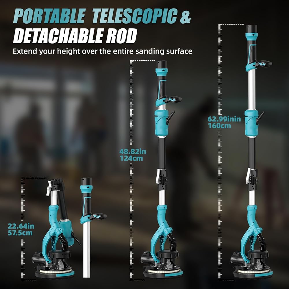• 【قضيب تمديد قابل للطي - قابل للتخصيص حسب احتياجاتك】سواء كنت تعمل على جدران منخفضة أو أسقف عالية، فإن ماكينة صنفرة الحوائط الجافة هذه تلبي احتياجاتك. قضيب التمديد المصنوع من الألومنيوم القابل للتمديد قابل للتعديل من 1.5 متر إلى 1.9 متر، مما يسمح لك بالوصول بسهولة إلى الأماكن المرتفعة دون أي سلالم أو أدوات أخرى.