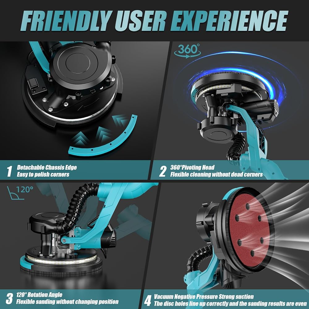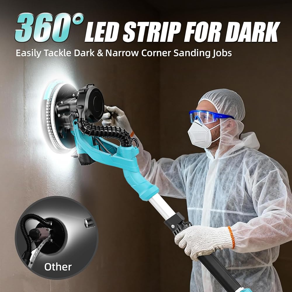 • 【مصباح LED 360 درجة وحافة قابلة للإزالة - سهولة رمل المناطق الداكنة والزوايا الضيقة】يسمح لك ضوء LED مزدوج الطبقة في الأسفل بالرمل بثقة في البيئات الخافتة ومراقبة تأثير الصنفرة بوضوح. تعمل أداة صنفرة الحوائط الجافة القابلة للفصل على صنفرة الزوايا والشقوق الضيقة بسهولة، مما يجعل عملك أكثر كفاءة ودقة.