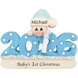 زخرفة الطفل الشخصية 2025 | تخصيص مجاني لمدة 24 ساعة | زينة عيد الميلاد الأولى للطفل محفورة بالليزر للشجرة | هدية مخصصة ملفوفة تذكار السنة الزرقاء لحديثي الولادة