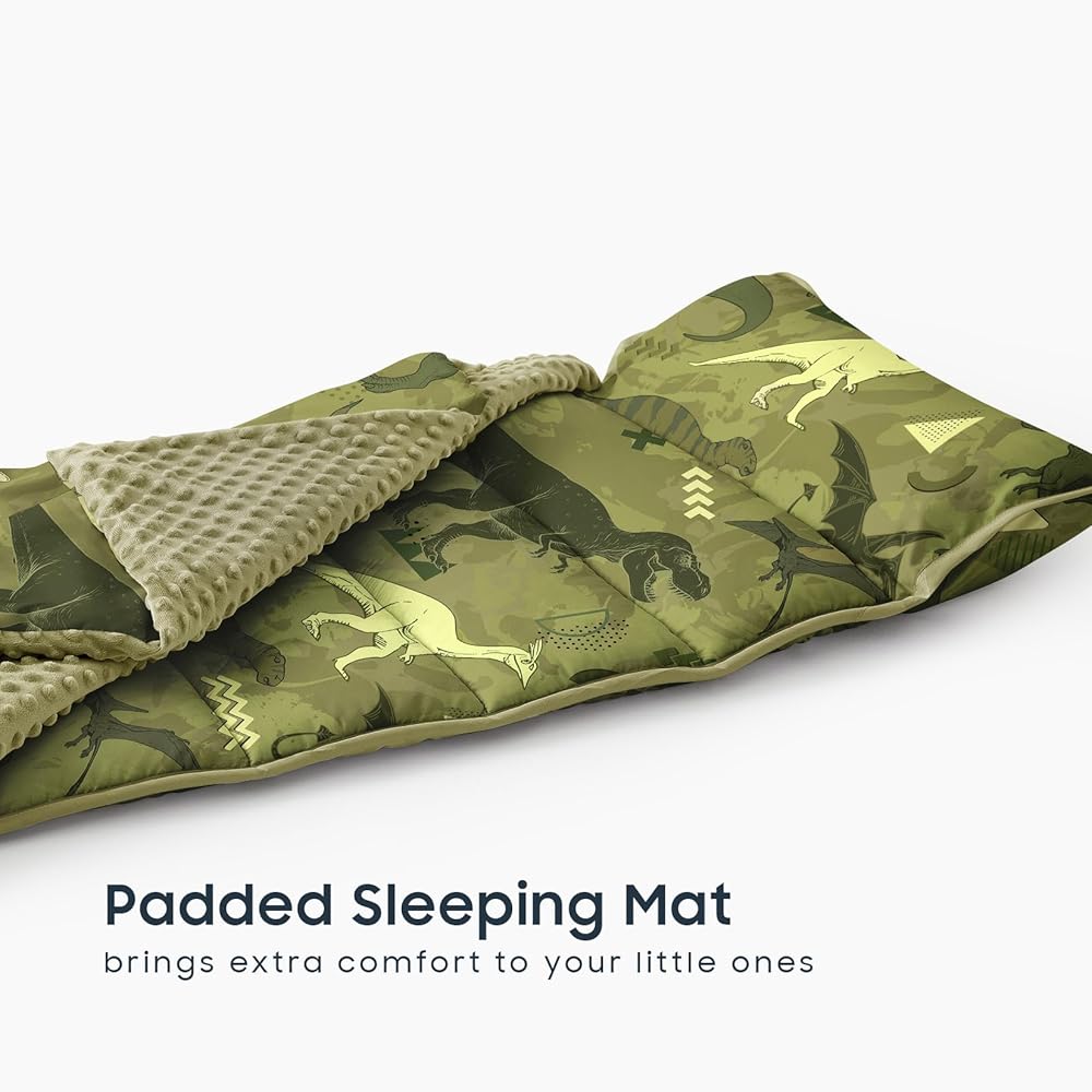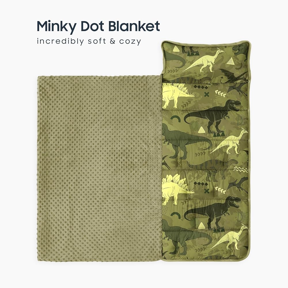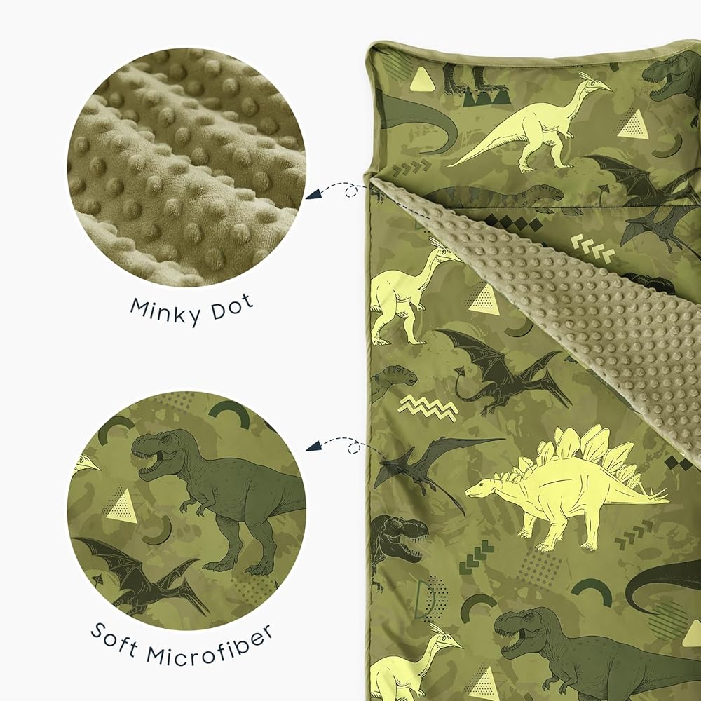 تصميم مغامرة الديناصورات: دع بساط القيلولة هذا الذي يحمل طابع الديناصورات ينقل طفلك إلى عالم ما قبل التاريخ المليء بتي ريكس وستيجوسورس والتيروصورات الطائرة، مما يخلق وقت قيلولة ممتعًا ومليئًا بالمغامرة.
