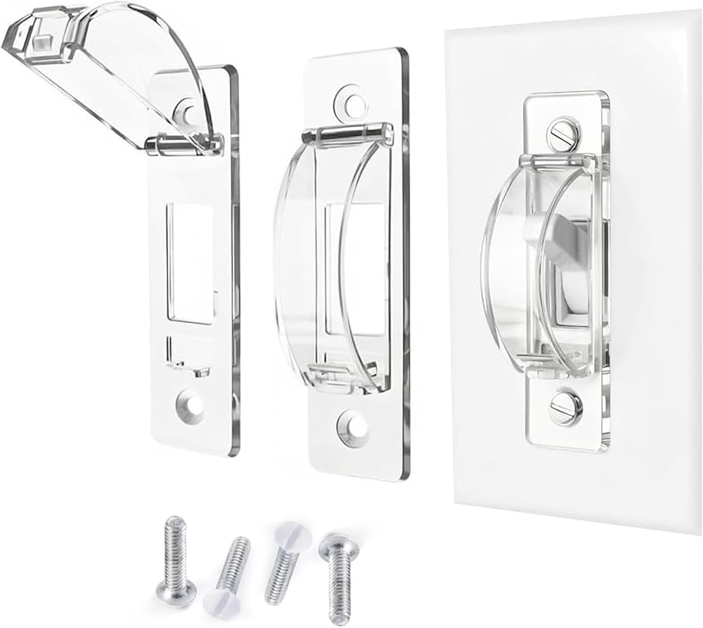 واقي مفتاح الإضاءة، عبوتان من قفل مفتاح الإضاءة الشفاف، واقي غطاء مفتاح الإضاءة، غطاء مفتاح الإضاءة المقاوم للأطفال، يمنع الأطفال والكبار من تشغيل أو إيقاف تشغيل الأضواء عن طريق الخطأ