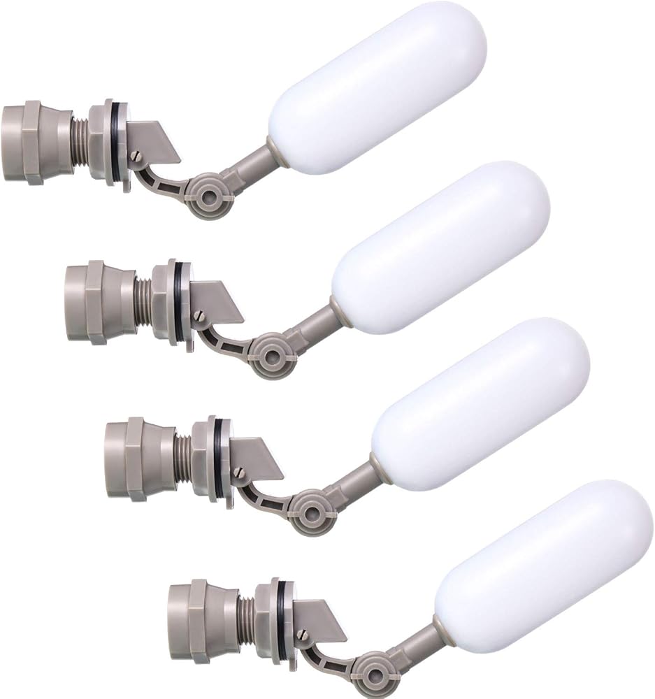 4 قطع من صمام الكرة العائمة 1/2 انش، صمام عائم بلاستيكي صغير مع ذراع قابل للتعديل للتحكم التلقائي في مستوى المياه في خزان المياه