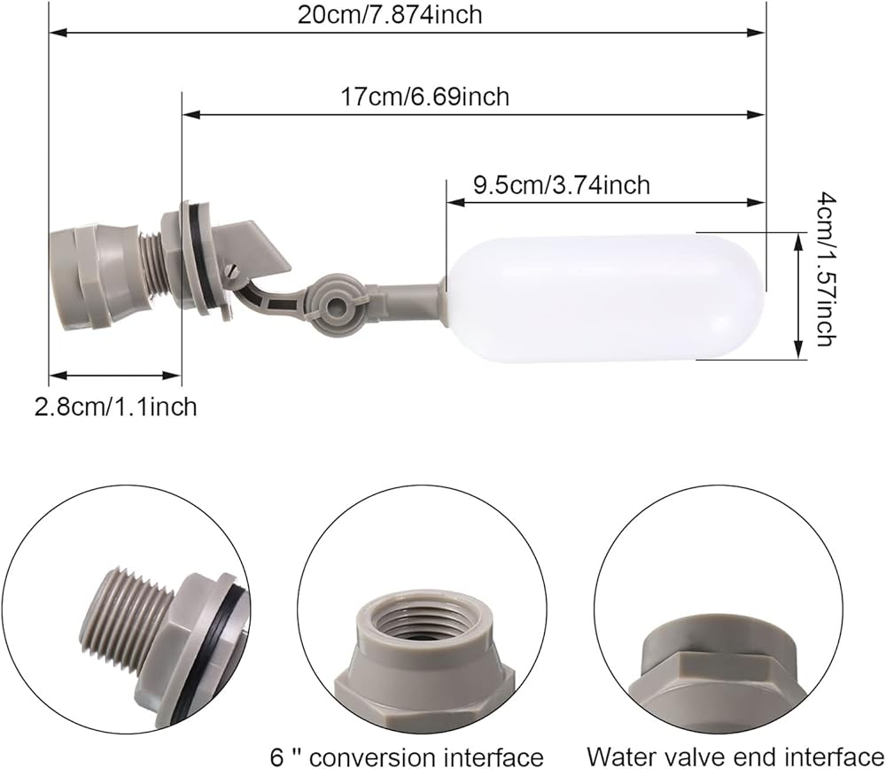الكمية والقياس: نوفر لك ما مجموعه 4 قطع صمامات الكرة العائمة 1/2 بوصة، الطول الكلي للصمام تقريبًا 7.8 بوصة وطول العوامة حوالي 3.7 بوصة، يمكنك تركيب أرقام مختلفة من صمامات المياه وفقا لحجم الخزان أو حمام السباحة