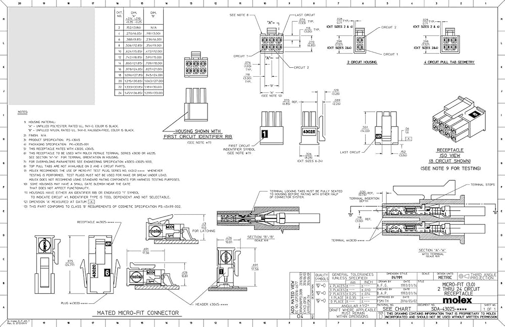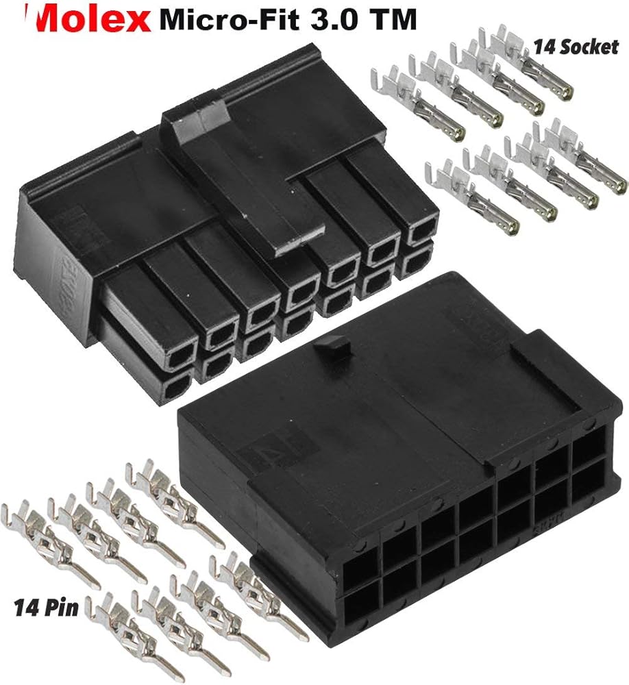 موليكس مايكرو فيت 3.0 صف مزدوج (14 دائرة) قابس وعاء للذكور والإناث، مع مقابس طرفية، (عبوة من مجموعة كاملة واحدة)