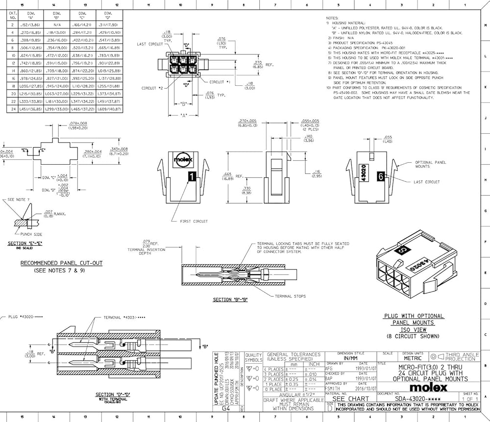 نظرة عامة: توفر أنظمة الموصلات Micro-Fit 3.0، المتوفرة بأحجام دوائر متعددة وأطوال الكابلات لتطبيقات الطاقة، مسافة 3.00 مم، وتصنيف تيار أقصى 8.5 أمبير والعديد من خيارات التصميم مثل ضمان موضع الطرف، والتزاوج الأعمى والدبوس المتوافق سمات.