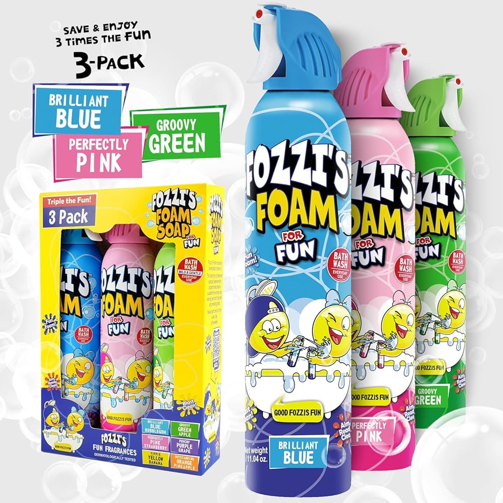 متعة وقت الاستحمام: ثلاثة أضعاف الألوان، ثلاثة أضعاف المتعة مع رغوة الفقاعات المختلطة المكونة من 3 قطع من فوزي؛ قم برش ما يصل إلى 8 أقدام لخلق مغامرات رغوية؛ سهلة التنظيف ومليئة بالضحك، مثالية للأطفال الصغار والأطفال للاستمتاع بالمرح الرغوي.