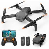 طائرات بدون طيار قابلة للطي للأطفال المبتدئين - مع كاميرا عالية الدقة 1080 بكسل، وطائرة رباعية المروحية بجهاز تحكم عن بعد FPV، ومفتاح تشغيل/أرض واحد، وثبات الارتفاع، وبطاريتين ألعاب طائرات الهليكوبتر RC هدايا للأولاد (غراب)
