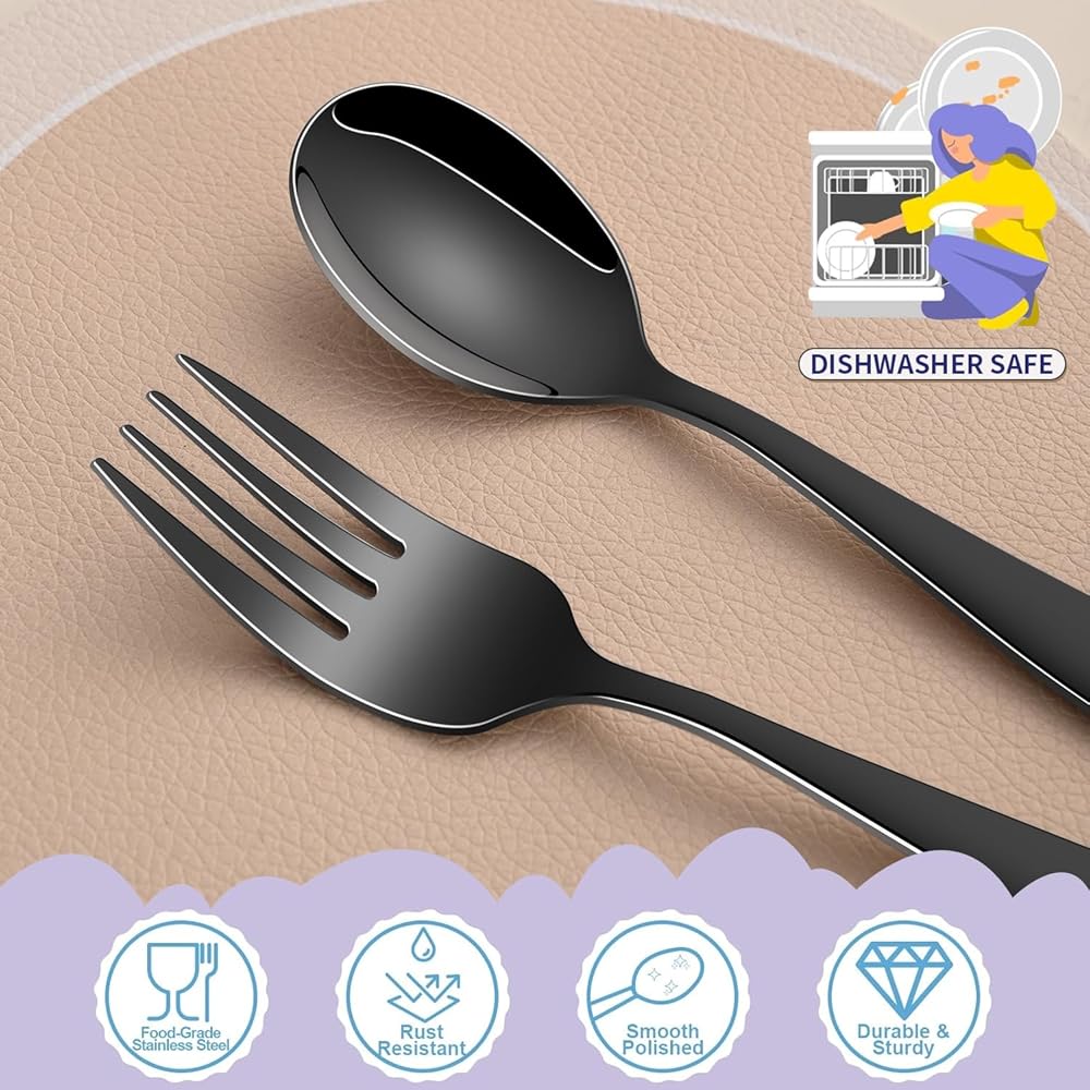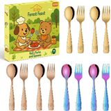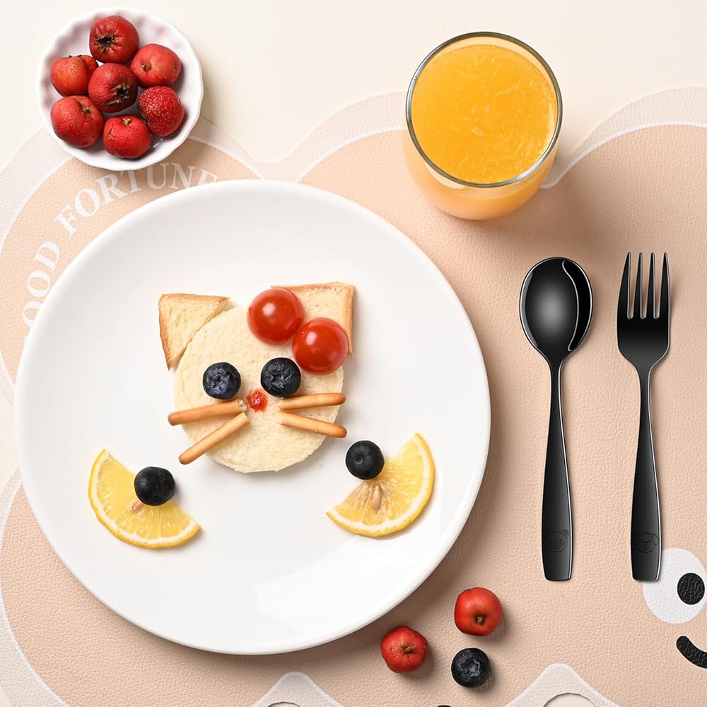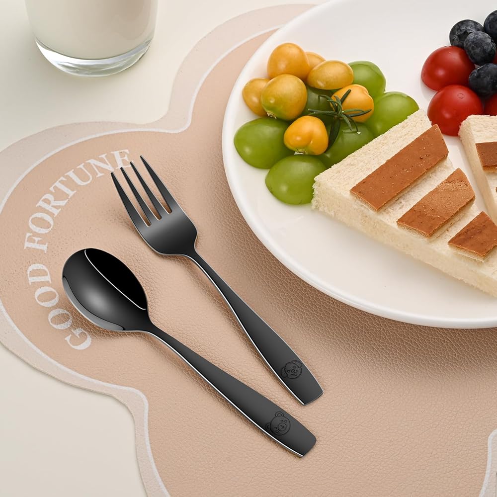 • 🍽️ مجموعة مكونة من 12 قطعة - تتضمن 6 شوكات بحجم الأطفال و6 ملاعق، رائعة للعائلات أو الرعاية النهارية أو النسخ الاحتياطية لأوقات الوجبات المزدحمة.