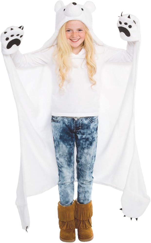 REALISTIC DETAILS: Fun and realistic polar bear-like details such as pocketed paws & vibrant embroidery make this wearable hooded blanket a perfect gift for kids who love to play.
