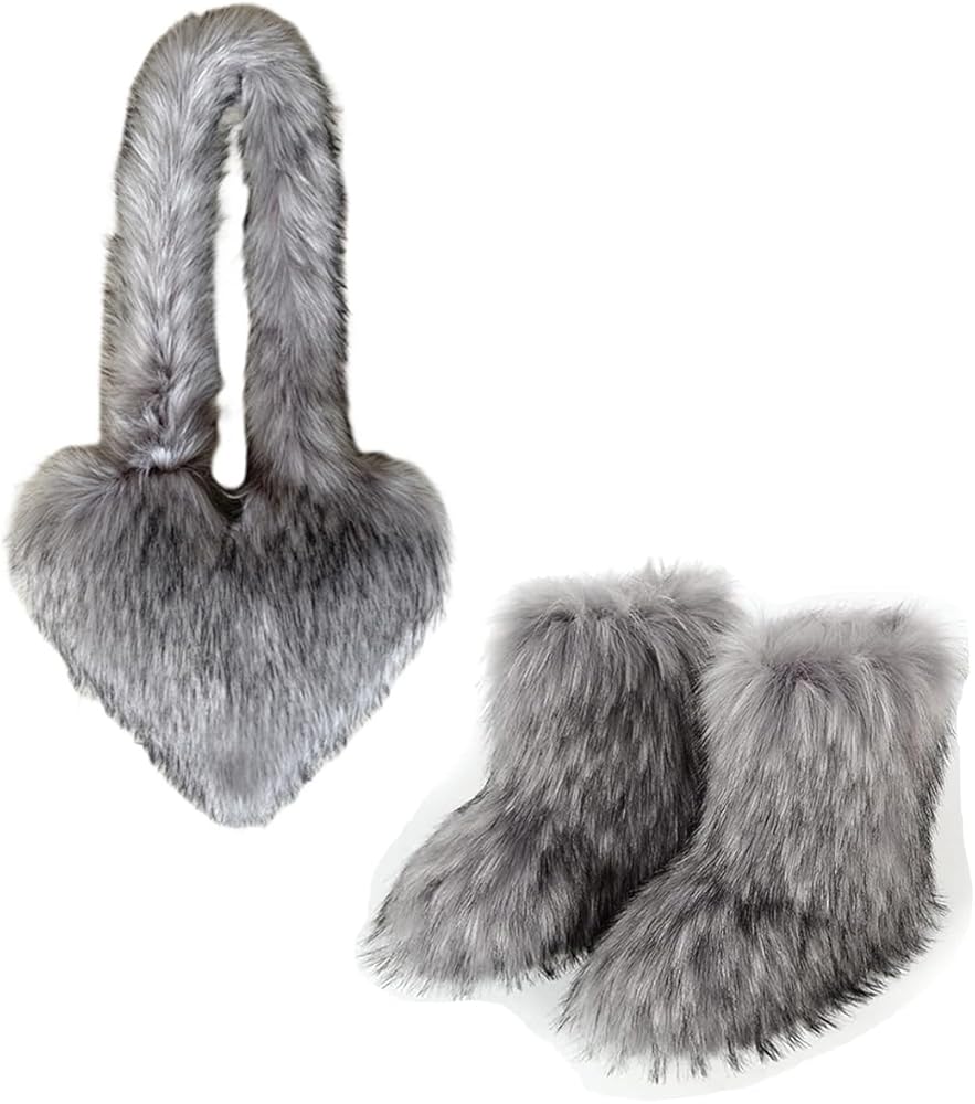Yamerbo المرأة على شكل قلب فروي حقيبة كتف حقيبة الشتاء فو الفراء منتصف العجل الثلوج مجموعة Y2K فتاة حقيبة يد حذاء الثلج عالي الرقبة دافئ in Kuwait