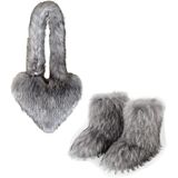 طقم حقائب مكون من 7 أحذية من الفرو الصناعي باللون الرمادي