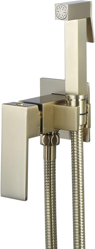 Solid Brass Hand Held Toilet Bidet Sprayer Brushed Gold Hot And Cold Bathroom Douche Kit Square Shower Faucet