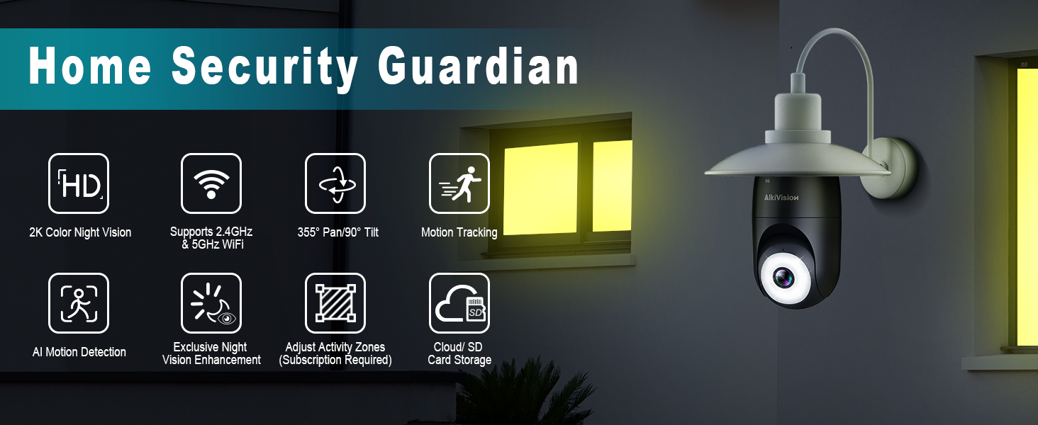 【نطاق مزدوج 5G&2.4G ورؤية ليلية ملونة بدقة 2K HD】توفر الكاميرا الخارجية اللاسلكية مزدوجة النطاق 5G&2.4G الخاصة بنا لأمن المنزل فيديو وصور بجودة 2K، مما يضمن لك رؤية تفاصيل فائقة الوضوح أثناء النهار والليل. تدعم الكاميرا الرؤية الليلية الملونة/الذكية/الأشعة تحت الحمراء، مع تقنية Magicpix الحصرية الخاصة بنا، الرؤية الليلية أفضل بكثير. كما أنها تتميز بدوران أفقي 355 درجة وعمودي 90 درجة، مما يغطي المزيد من المناطق ويوفر حماية شاملة لمنزلك.