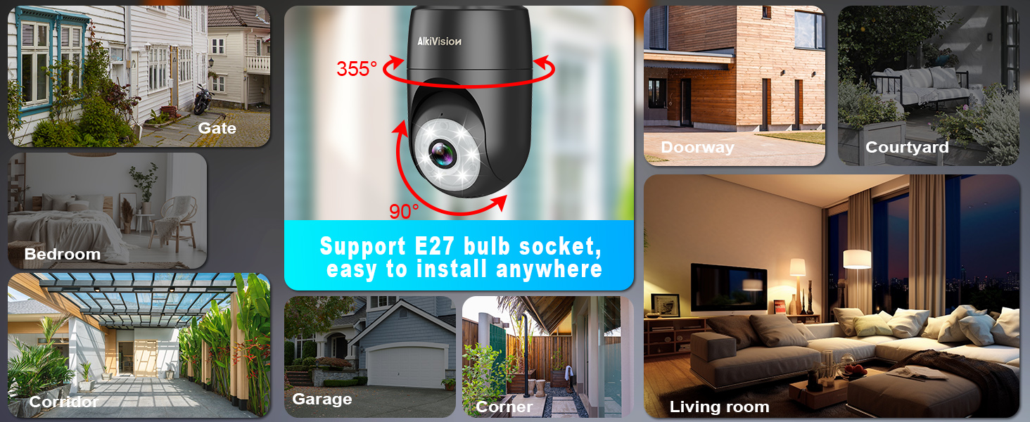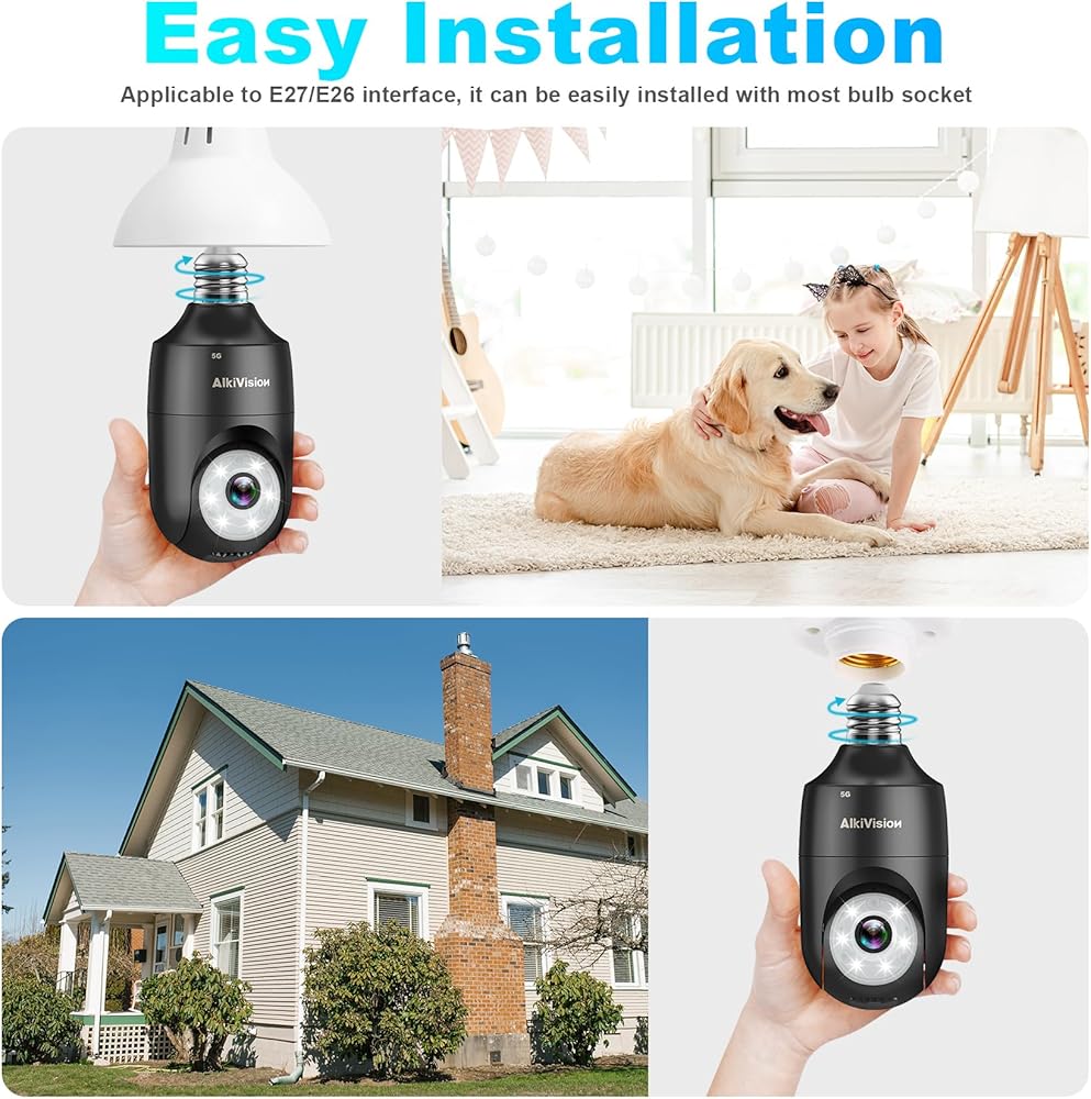 【لاسلكي وسهل التركيب للغاية】إن camaras de seguridad para casa سهلة التركيب والإعداد. فقط قم بتوصيله بمقبس الإضاءة القياسي E27/E26 (110 فولت ~ 240 فولت) مثل تثبيت لمبة الإضاءة، ثم قم بتنزيل التطبيق "VicoHome"، واضغط على زر إعادة الضبط لتشغيله. ما عليك سوى الانتظار حتى يبحث المصباح الكهربائي عن بلوتوث الهاتف للاتصال تلقائيًا لتحديد شبكة wifi. إذا لم يكن بلوتوث هاتفك متاحًا، فسينبثق التطبيق رمز QR، استخدم الكاميرا لمسح رمز QR ضوئيًا للاتصال.