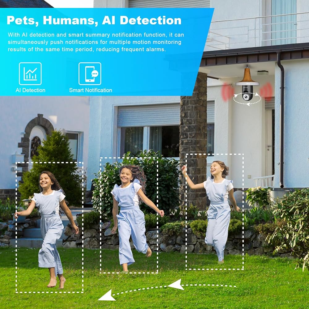 【التعرف على تحليل كشف الحركة بالذكاء الاصطناعي】تتميز كاميرا الأمان الخارجية هذه بكشف حركة ذكي متطور يمكنه التعرف على الأشخاص والحيوانات الأليفة. باستخدام وظيفة إنذار المنطقة المحددة، يمكنك ضبط منطقة لاكتشاف البشر أو إيقاف اكتشاف الكائنات الأخرى، مثل الحيوانات الأليفة والمركبات. لديه وظيفة تلخيص الإخطارات، والتي يمكنها إرسال إشعارات اكتشاف الحركة في نفس الفترة الزمنية بطريقة موحدة لتقليل دفعات الإشعارات المتكررة.
